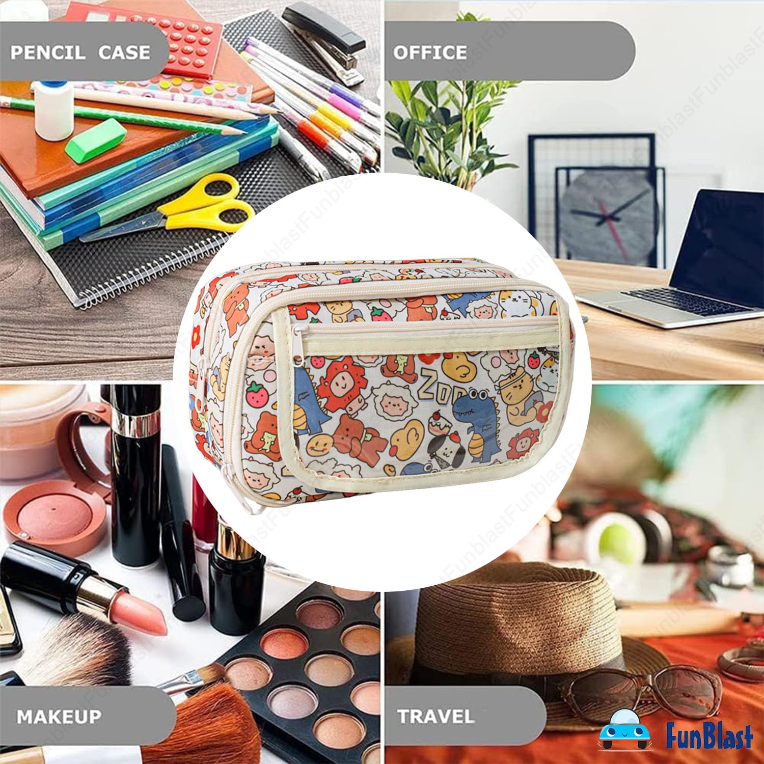 FunBlast Pencil Pouch for Girls– Kawaii Pencil Pouch, Aesthetic Pencil Case Organizer, Large Capacity Stationary Organizer Case, Multipurpose Zipper Pouch for Kids & Adults Package includes 1 pcs of kawaii 3 compartment pencil pouch – Size of pouch 12 x 21 x 7 cm –– Made of polyester material Multipurpose Stationary Organizer – This pencil pouch is best stationary organizer for school, office and collage usage – Suitable for kids, teens & adults Stationary Pouches – This Case can be used to Carry and organize your Stationary product, Cosmetics, miscellaneous parts, tools and accessories Stationary Gifts for Kids – This stylish pencil pouch is the best gift for toddlers, birthday gift for kids, return gift for children, can be gifted on any occasion Kawaii Pouch – This unique box can accommodate all the necessary stationery that your child would need to carry to school with separate slots for pencil, rubber, eraser, geometric set