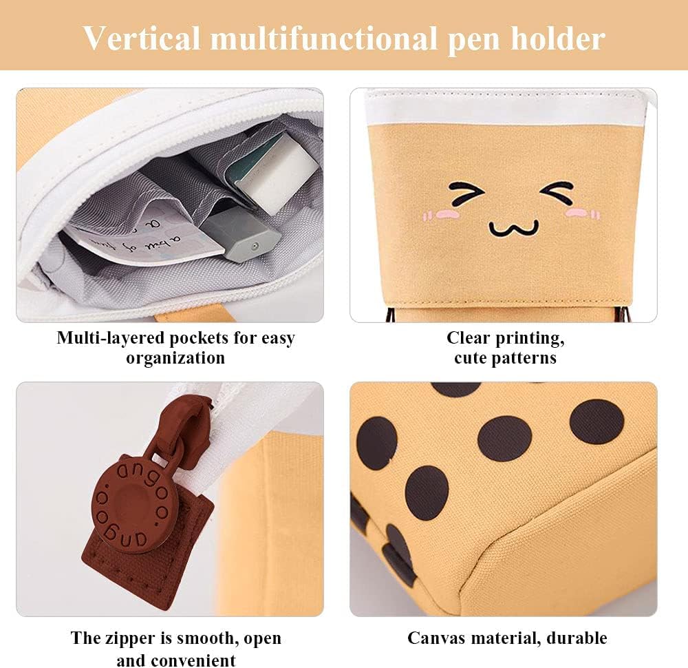 Package includes 1 pcs of kawaii standing boba pencil pouch – Size of pouch 17 x 12 x 6 cm –– Made fabric material