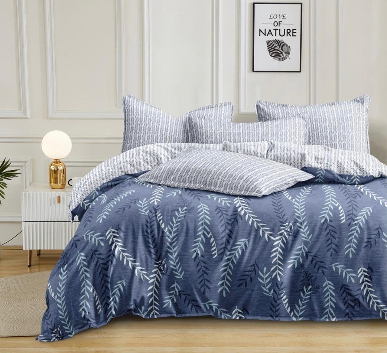 Contents :- 1 Reversible Comforter with 1 Flat Bedsheet and 2 Contrast Pillow Covers