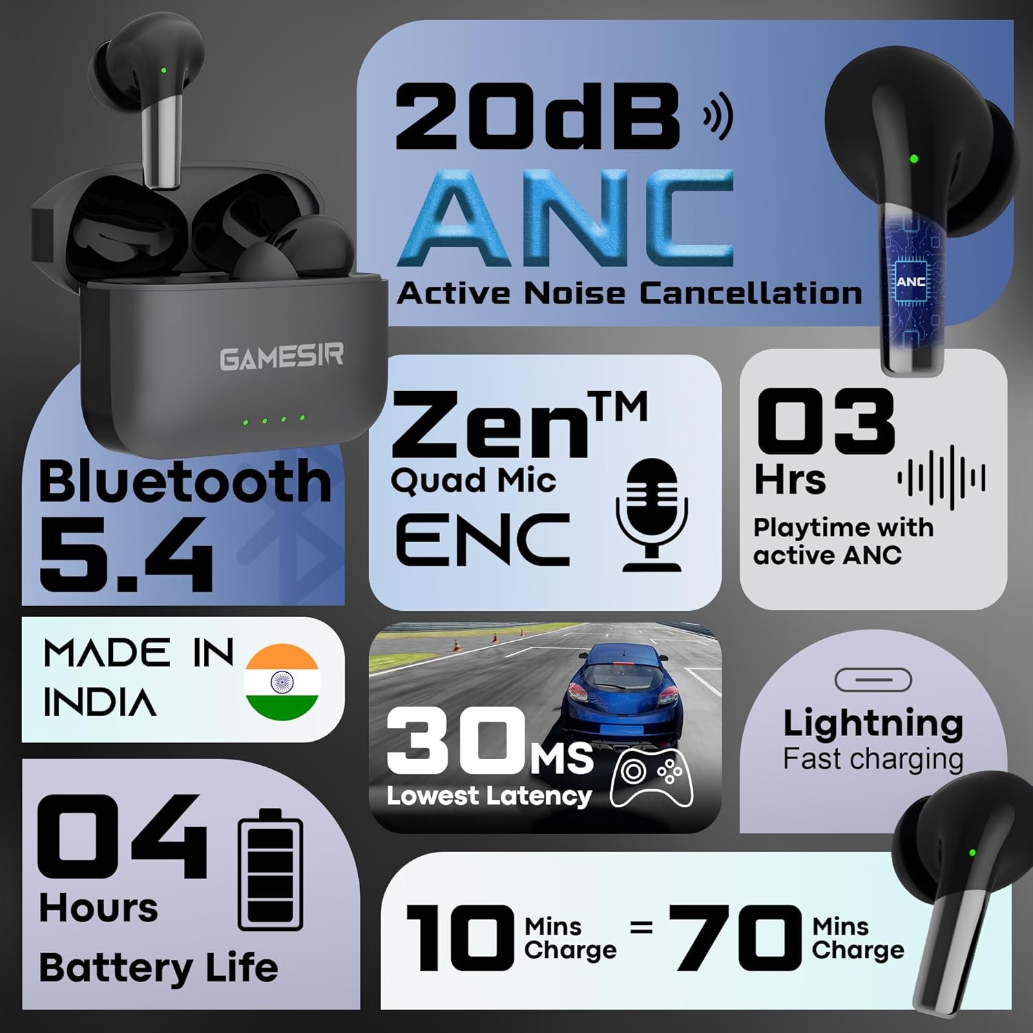 🔇 ENC Noise Cancellation for Clear Calls: Built-in Environmental Noise Cancellation (ENC) filters out background noise for crystal-clear voice quality during calls or meetings.