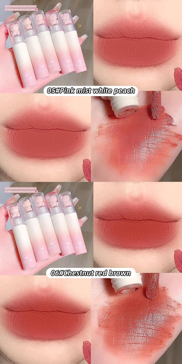 💋 Soft-matte texture meets glassy glide — The Gege Bear Velvet Mist Lip Glaze combines the elegance of matte lipstick with the comfort of a lip balm. Its unique formula delivers a blurred velvet finish that’s smooth, non-sticky, and perfect for all-day wear.