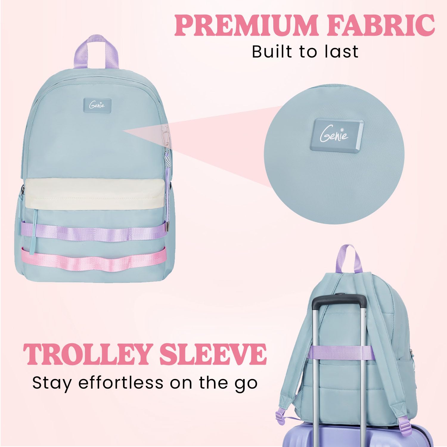 Give your everyday routine a breath of freshness with Genie K-Pack college backpack for women. With 4 zippered compartments including a secret pocket, this backpack for girls will be your trendsetting statement as you head to college. It is spacious enough to carry all your essentials & accessories as you go.