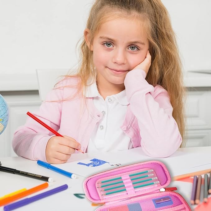 Large Capacity Pen Case: The pencil case is perfect for holding all the girls and kids school supplies. It is made of safe materials. The inner pocket provides space for keeping small notes, cards, tickets, or erasers in the right place.