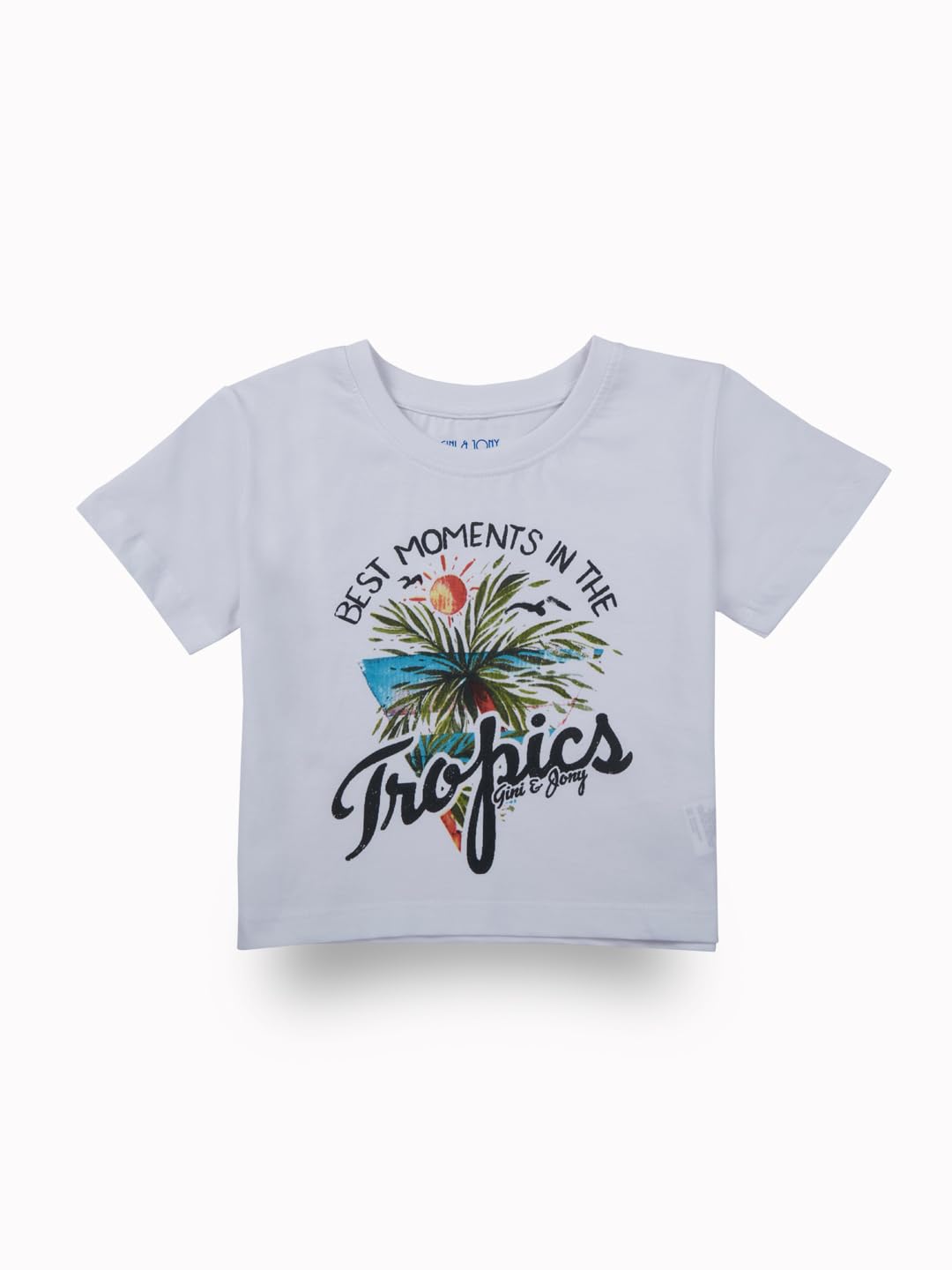 Gini & Jony introduces this fun and lively 3-pack of girls’ multicolor graphic print tops, highlighting prints like “Girls Night,” “Girls Power,” and “Best Moments in the Tropics.” Made from breathable cotton knit fabric, each top is tailored in a regular fit with a round neckline, half sleeves, and a pull-on closure for effortless style. This colorful combo in yellow, navy blue, and white is ideal for holidays, or everyday fun.