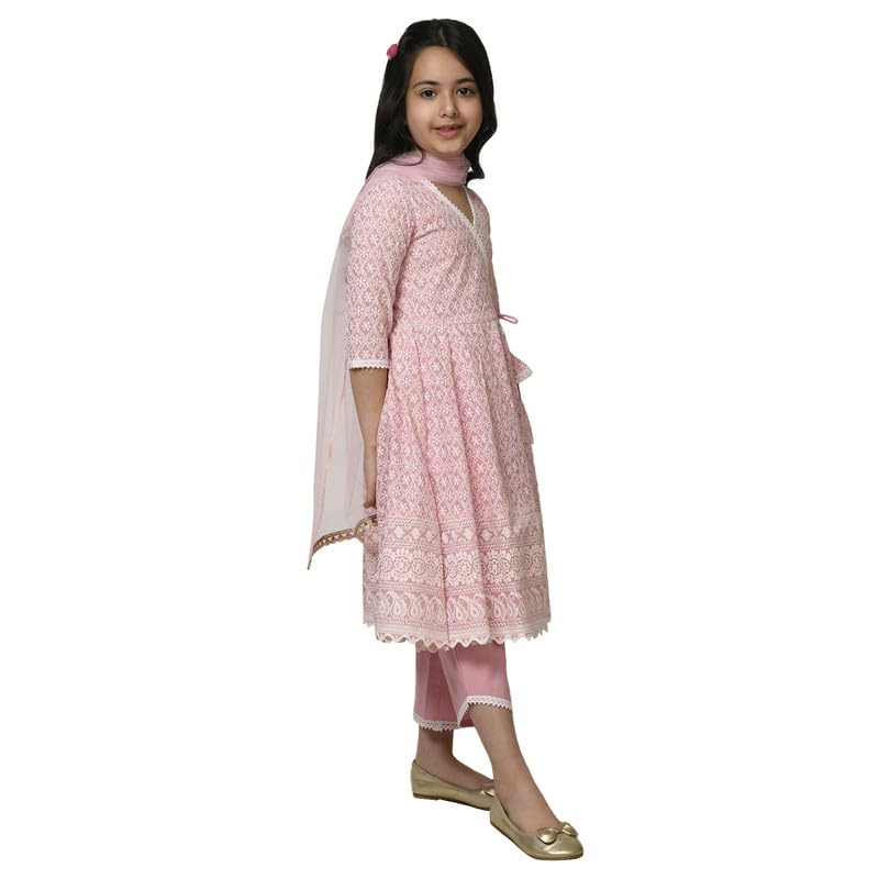Girls Calf Length anarkali Dress (Pink_8 Years-10 Years)