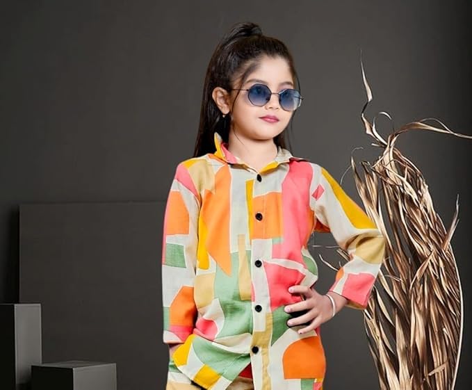 Girl’s Cotton Blend Printed Shirt & Palazzo set | Girls Clothing Set | Girls Printed Co-ords Set | Shirt and Pant set| 2 Piece Set |