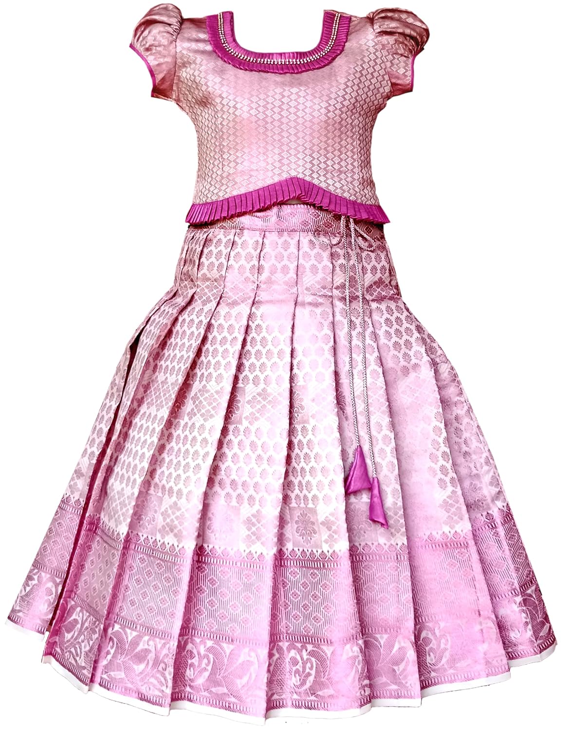 Girl’s Silk Readymade Traditional Lehenga Choli with- Multi Jarigai KERALA PATTU HALF SAREE -Readymade Pattu Pavadai