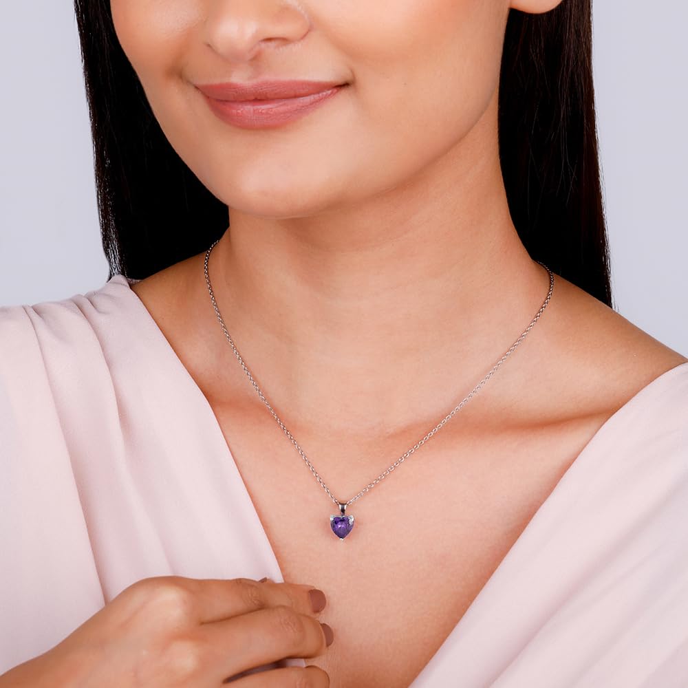 GIVA 925 Silver Purple Heart Pendant with Link Chain| Gifts for Girlfriend,Pendant to Gift Women & Girls | With Certificate of Authenticity and 925 Stamp | 6 Month Warranty