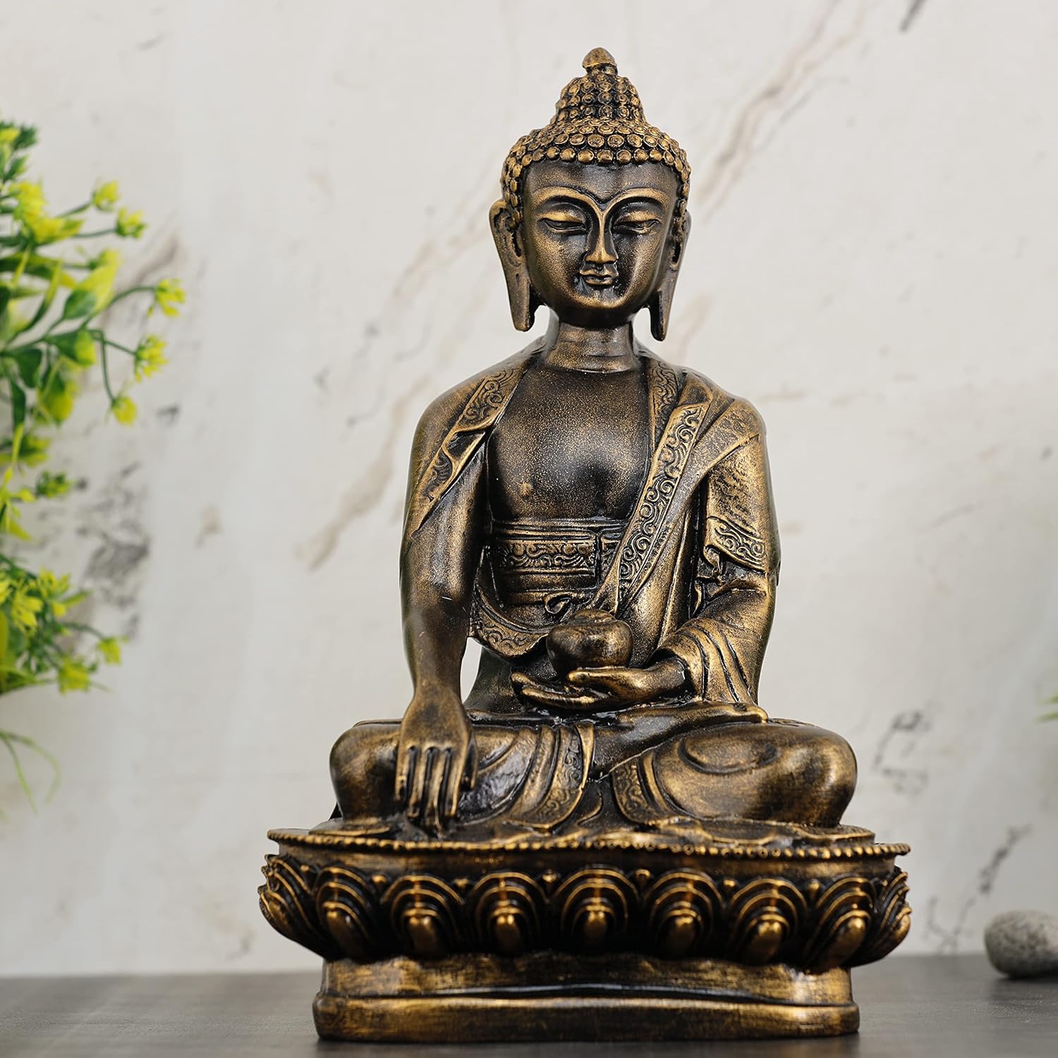 Global Grabbers Buddha Statue showpiece Idol Home Decor Items for Living Room and Gifts (Antique Golden)