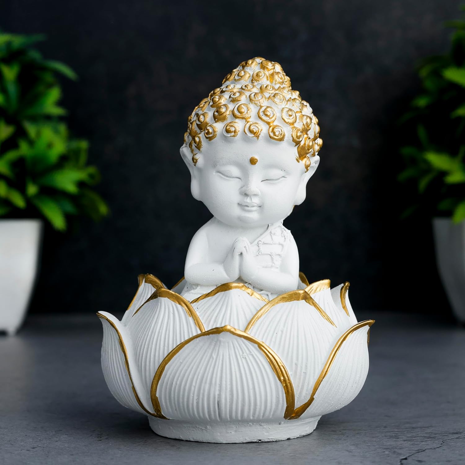 These beautiful Laughing buddha Baby Monk statues for living room from the house Global Grabbers on Amazon are a wonderful gifts and very beautiful home decor Items for living room bedroom These Laughing buddha Baby Monk show pieces for home decor are made From highest grade polyresin material and is handcrafted by skilled artisans using conventional techniques. Everyone wants perfect peace of mind that’s free from ignorance, greed, hatred and other afflictive states. Laughing buddha Baby Monk Idol as home decoration items are always been a great symbol of peace. So, what could be a better gift or a better option to bring home than the idol of Laughing buddha Baby Monk. This Laughing buddha Baby Monk statue is a perfect piece of art for Home decoration and house warming gifts for new home . Elevate your home and garden décor with our exquisitely crafted Laughing buddha Baby Monk statue, a perfect symbol of peace and spiritual enlightenment. this detailed Laughing buddha Baby Monk statue is designed to bring serenity and mindfulness to any space. Whether placed in your living room, meditation room, office, or garden, its intricate hand-carved features and serene expression will create a calming atmosphere. Ideal for yoga studios and as a thoughtful anniversary gifts for parents wife or housewarming these Laughing buddha Baby Monk statues not only enhances aesthetics but also promotes relaxation and positive energy. Embrace tranquility and spiritual growth by adding this elegant Laughing buddha Baby Monk statue to your new home decor collection today.