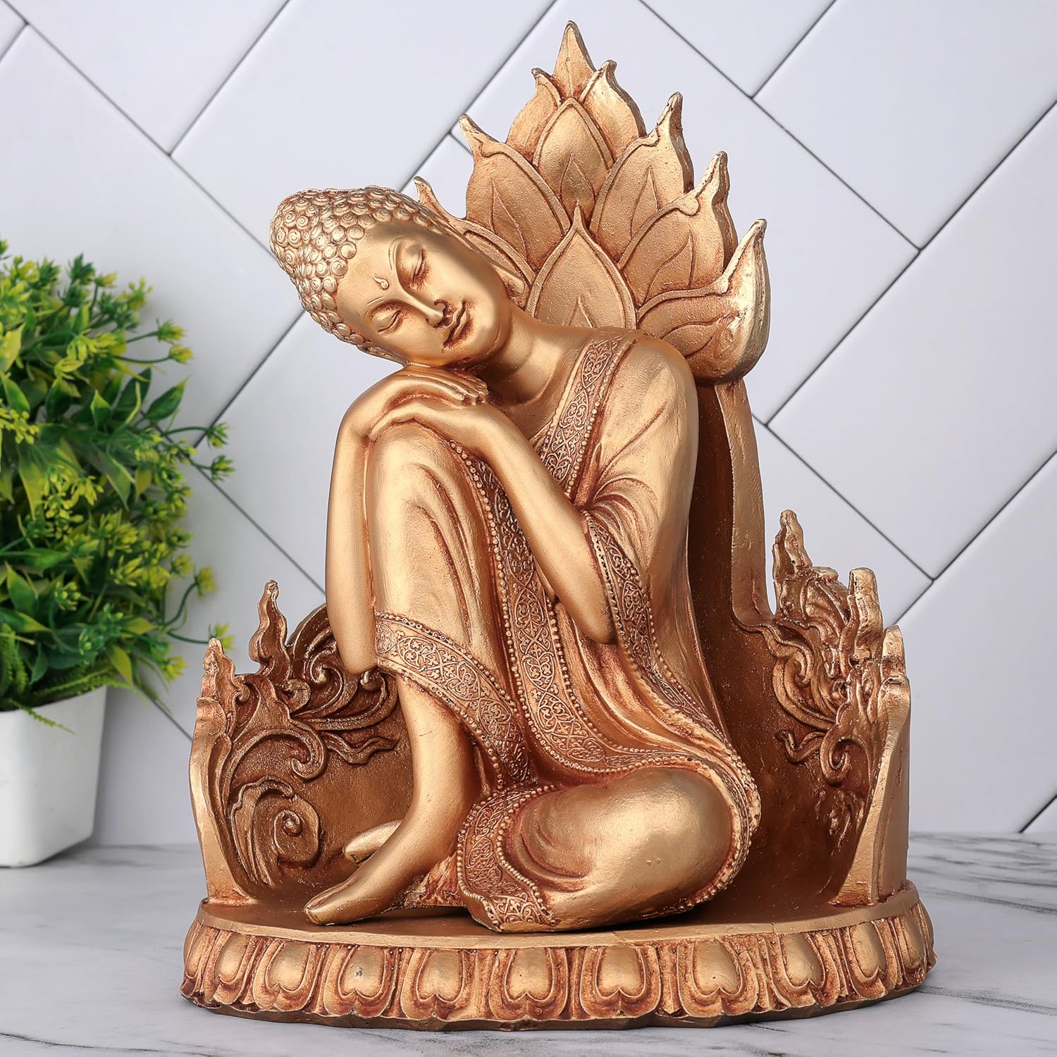 These beautiful lord gautam buddha statues for living room from the house of Global Grabbers on Amazon are a wonderful gifts and very beautiful home decor Items for living room bedroom These buddha show pieces for home decor are made From highest grade polyresin material and is handcrafted by skilled artisans using conventional techniques. Everyone wants perfect peace of mind that’s free from ignorance, greed, hatred and other afflictive states. Buddha Idol as home decoration items are always been a great symbol of peace. So, what could be a better gift or a better option to bring home than the idol of Buddha. This Buddha statue is a perfect piece of art for Home decoration and house warming gifts for new home . Elevate your home and garden décor with our exquisitely crafted Buddha statue, a perfect symbol of peace and spiritual enlightenment. this detailed Buddha statue is designed to bring serenity and mindfulness to any space. Whether placed in your living room, meditation room, office, or garden, its intricate hand-carved features and serene expression will create a calming atmosphere. Ideal for yoga studios and as a thoughtful anniversary gifts for parents wife or housewarming these Buddha statues not only enhances aesthetics but also promotes relaxation and positive energy. Embrace tranquility and spiritual growth by adding this elegant Buddha statue to your new home decor collection today.