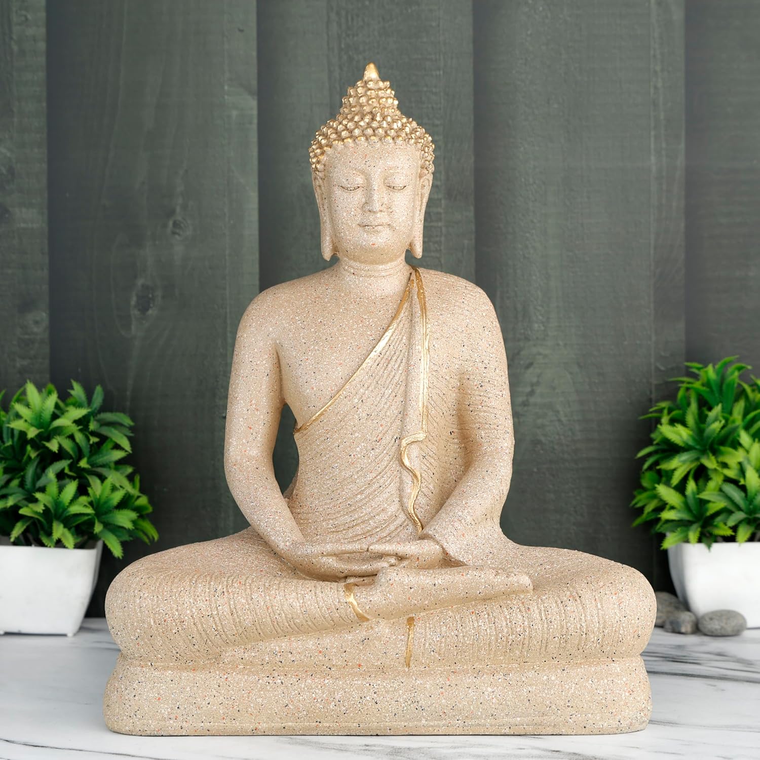 These beautiful lord gautam buddha statues for living room from the house of Global Grabbers on Amazon are a wonderful gifts and very beautiful home decor Items for living room bedroom These buddha show pieces for home decor are made From highest grade polyresin material and is handcrafted by skilled artisans using conventional techniques. Everyone wants perfect peace of mind that’s free from ignorance, greed, hatred and other afflictive states. Buddha Idol as home decoration items are always been a great symbol of peace. So, what could be a better gift or a better option to bring home than the idol of Buddha. This Buddha statue is a perfect piece of art for Home decoration and house warming gifts for new home . Elevate your home and garden décor with our exquisitely crafted Buddha statue, a perfect symbol of peace and spiritual enlightenment. this detailed Buddha statue is designed to bring serenity and mindfulness to any space. Whether placed in your living room, meditation room, office, or garden, its intricate hand-carved features and serene expression will create a calming atmosphere. Ideal for yoga studios and as a thoughtful anniversary gifts for parents wife or housewarming these Buddha statues not only enhances aesthetics but also promotes relaxation and positive energy. Embrace tranquility and spiritual growth by adding this elegant Buddha statue to your new home decor collection today.