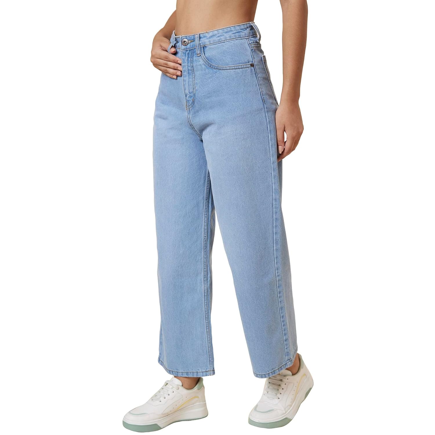 Globus Women Mid Rise Whisker Effect Wide Leg Washed Jeans
