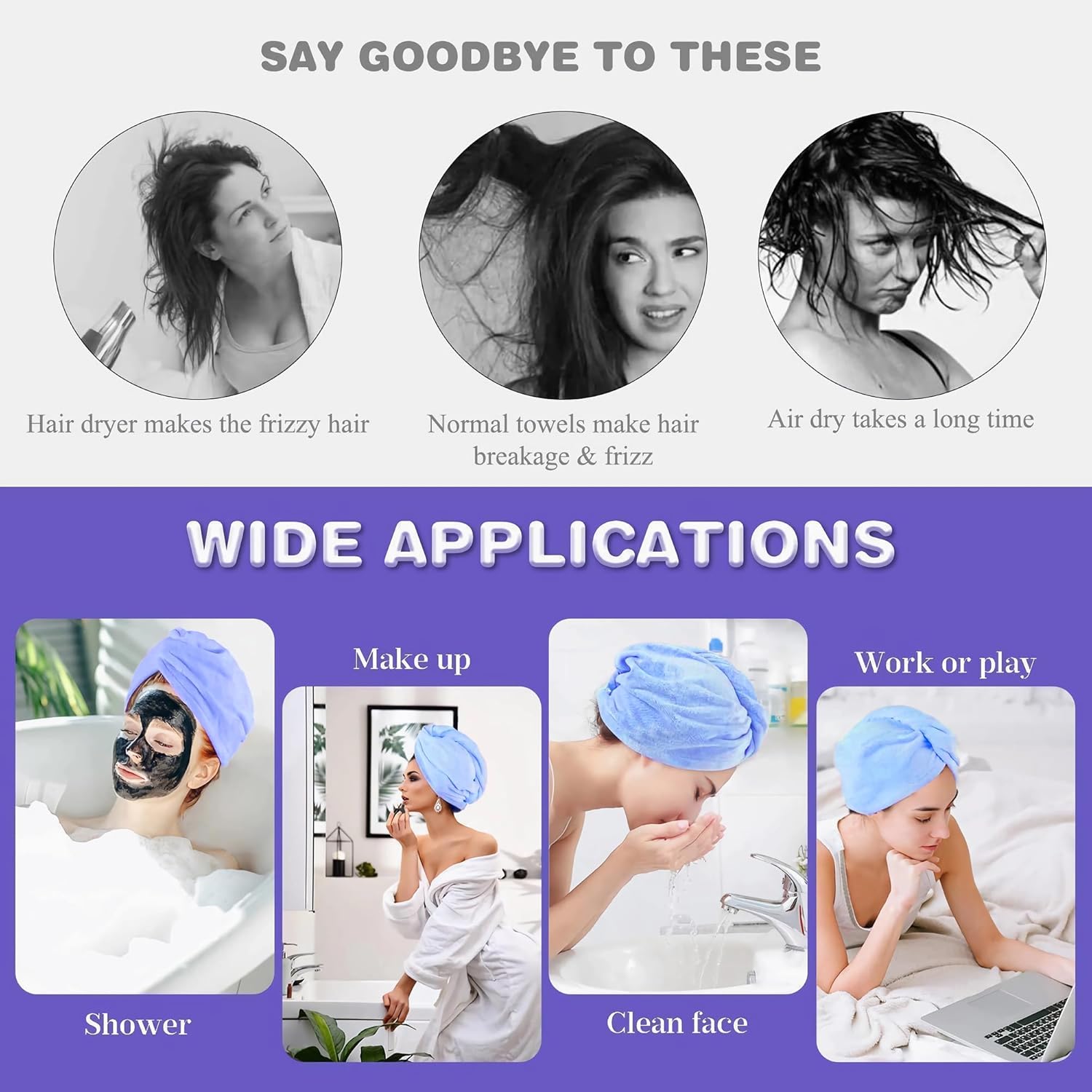 Reduces drying time, absorbing excess water quickly.Helps prevent frizz and breakage that can occur with rough cotton towels.Lightweight and easy to wrap around the head, staying securely in place.