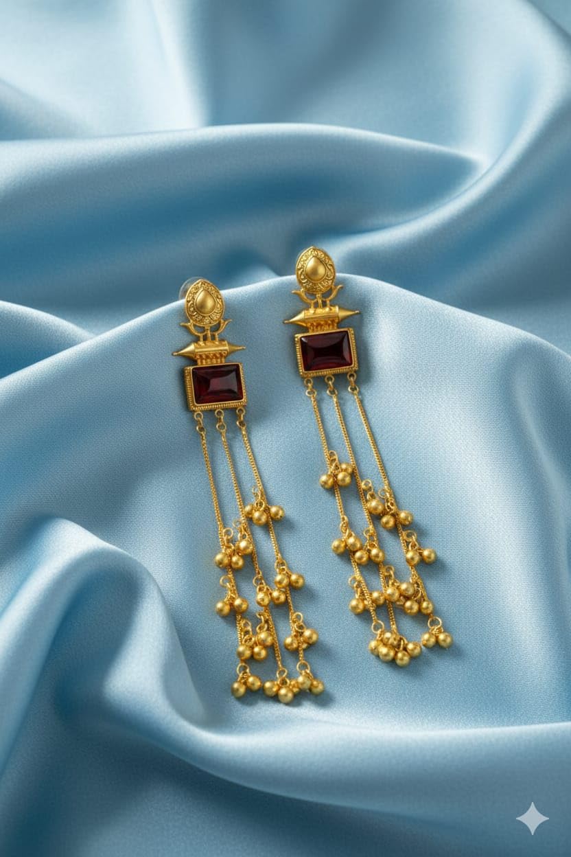 Gold Finish Long Kashmiri Dangler Earrings for Women | Traditional Dangle Earrings | Ethnic Fashion Jewellery