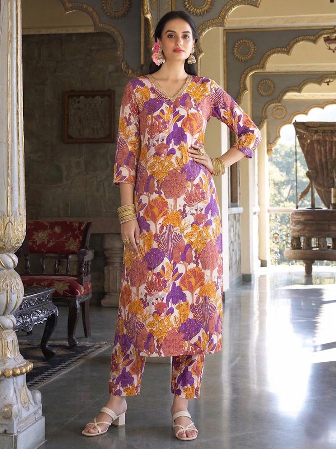 Upgrade your wardrobe with this elegant GoSriKi Co Ord Set for Women crafted from premium Cotton Blend fabric. The soft and breathable material ensures comfort while maintaining a stylish and refined appearance. This kurti set for woman includes a beautifully printed Straight kurta paired with matching Pant pants, creating a coordinated co ord set for women that blends modern style with ethnic fashion. The V-Neck 3/4 Sleeve design adds a contemporary and elegant touch. Designed with a regular Straight fit, this co ord set for women offers a flattering flared silhouette while ensuring comfort and ease of movement. The printed pattern enhances the overall appeal, making it suitable for multiple styling needs. Pair this stylish GoSriKi co ord set for women with flats, heels, or ethnic footwear to create a graceful and fashionable look.