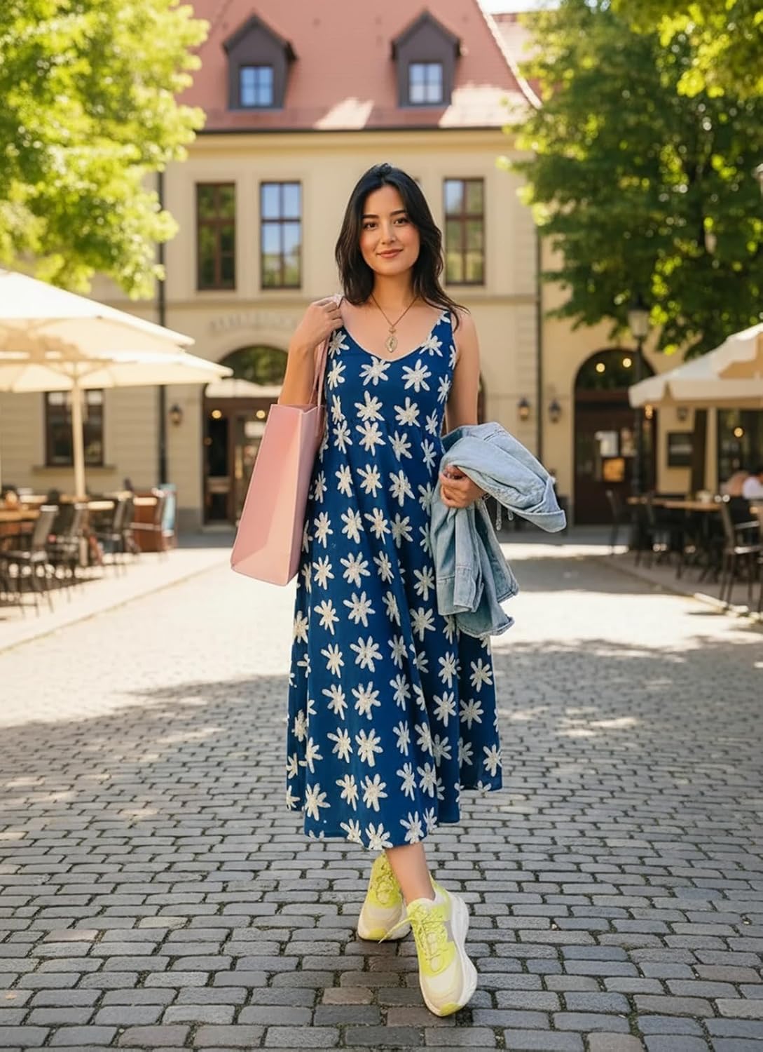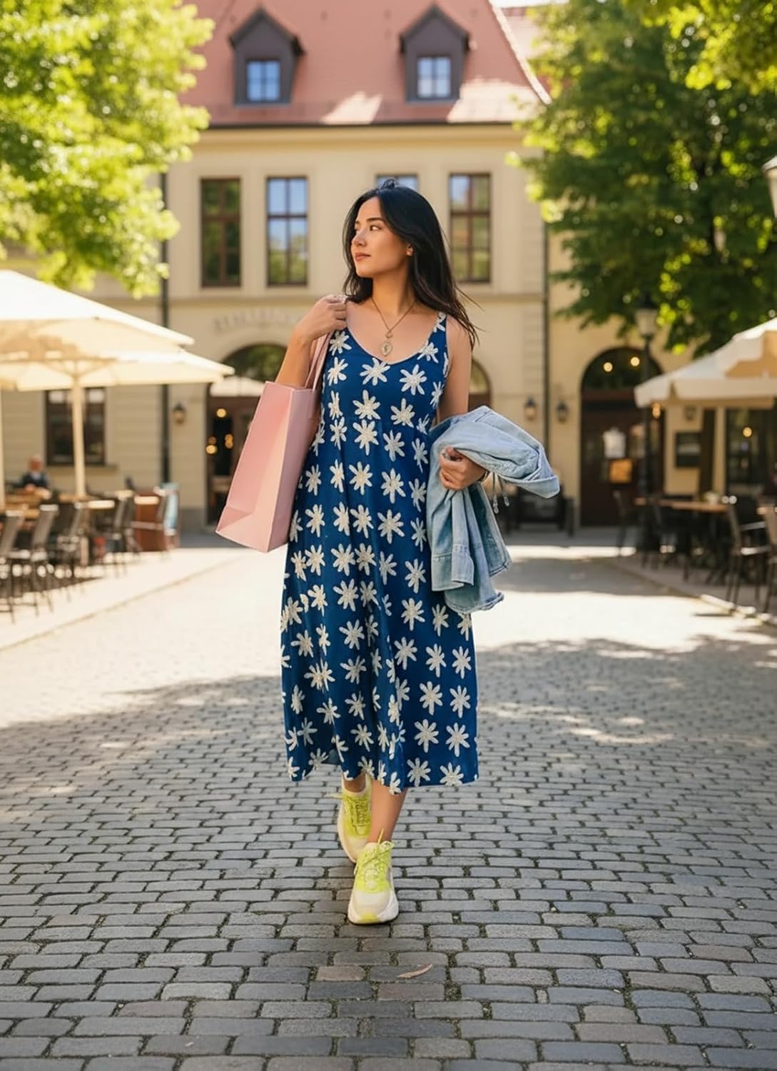 GoSriKi Women’s Blue Rayon Viscose Anarkali Floral Printed Kurta – Elegant Sleeveless Long Kurta for Women, Stylish Outfit