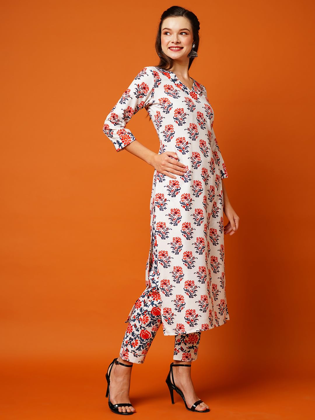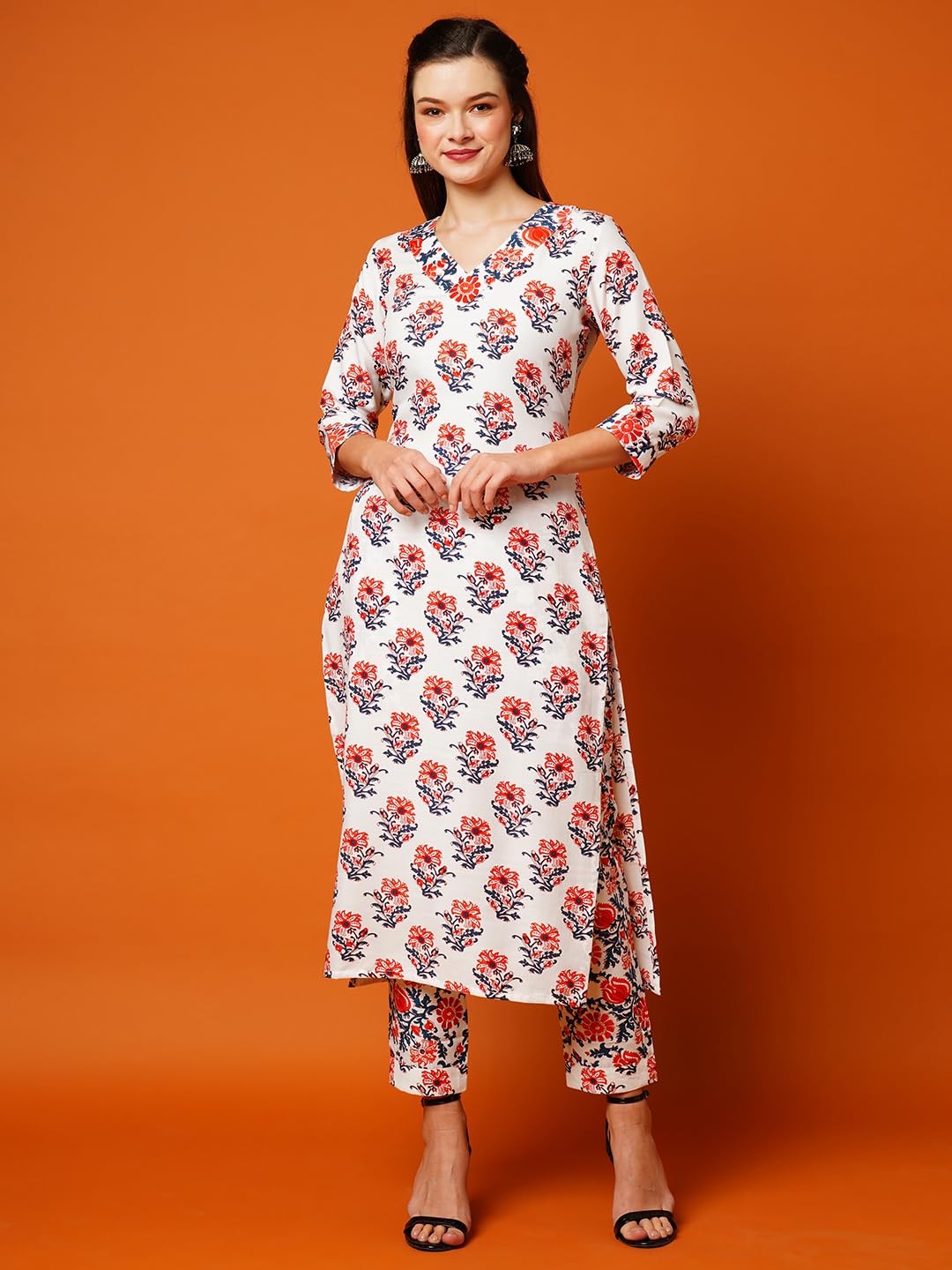 GoSriKi Women’s Cotton Blend Printed Straight Kurta with Pant (Yani Orange-NG-GS_XXL_Orange_XX-Large)