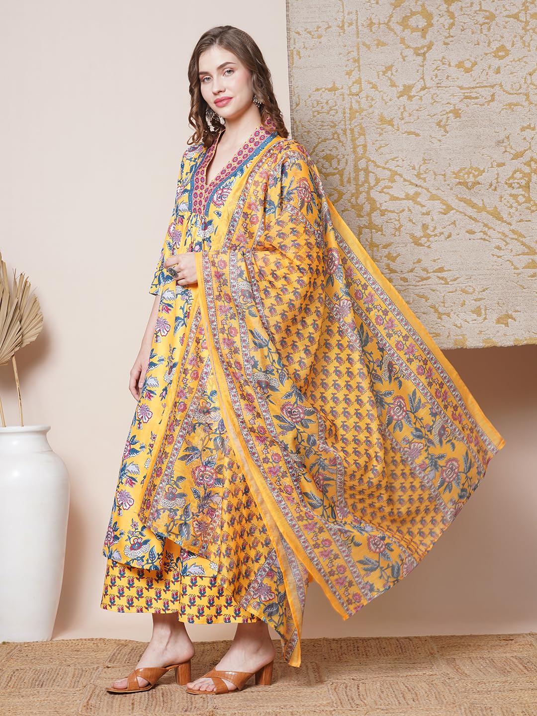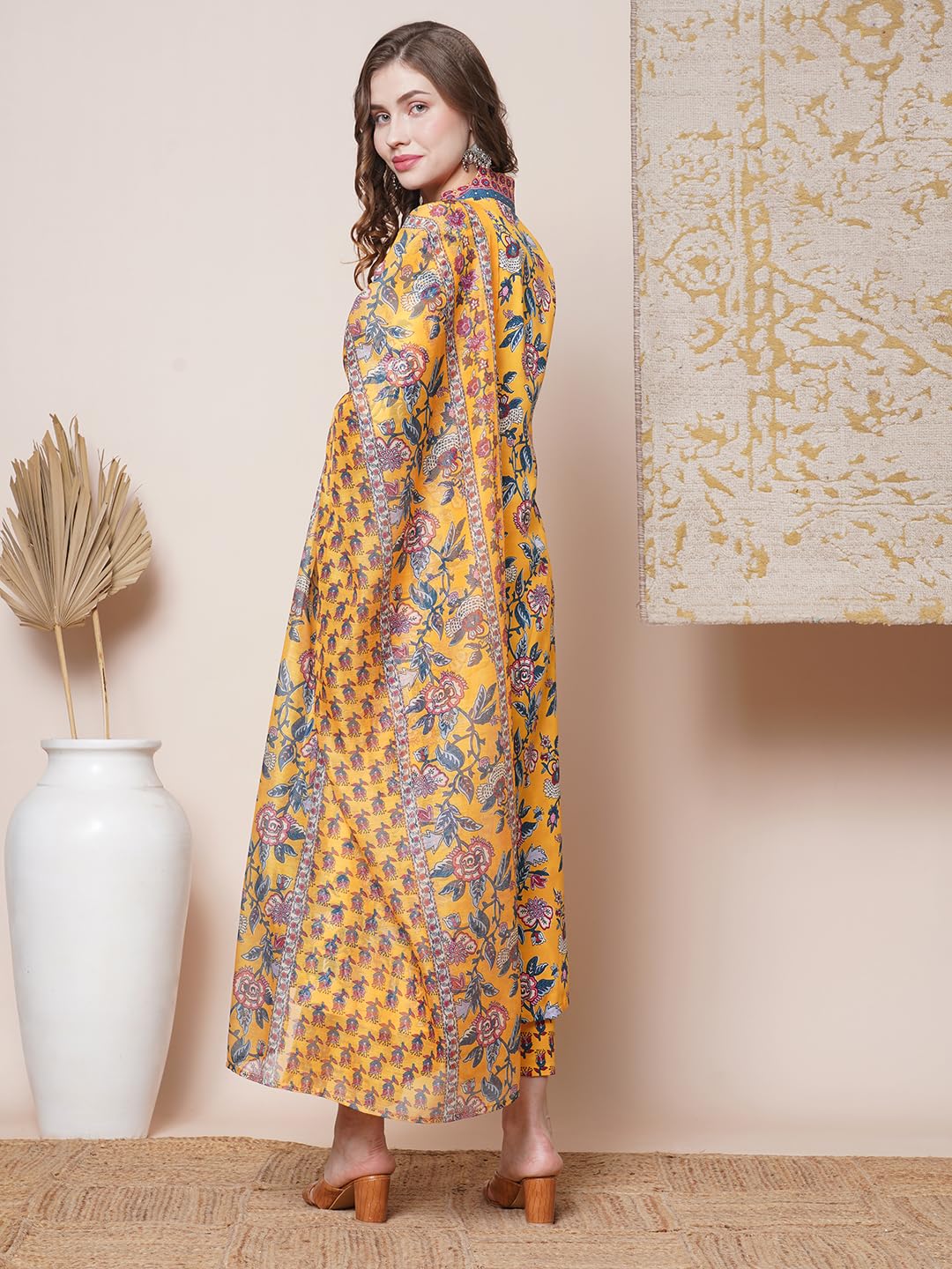 GoSriKi Women’s Rayon Blend Anarkali Printed Kurta with Palazzo & Dupatta