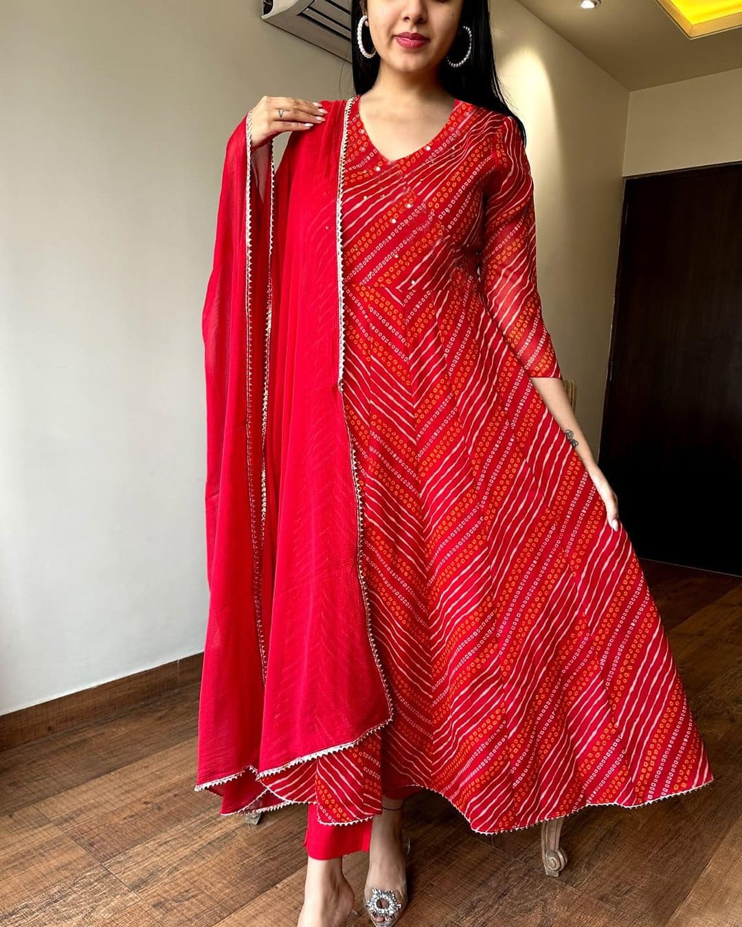 GoSriKi Women’s Rayon Blend Anarkali Printed Kurta with Pant & Dupatta