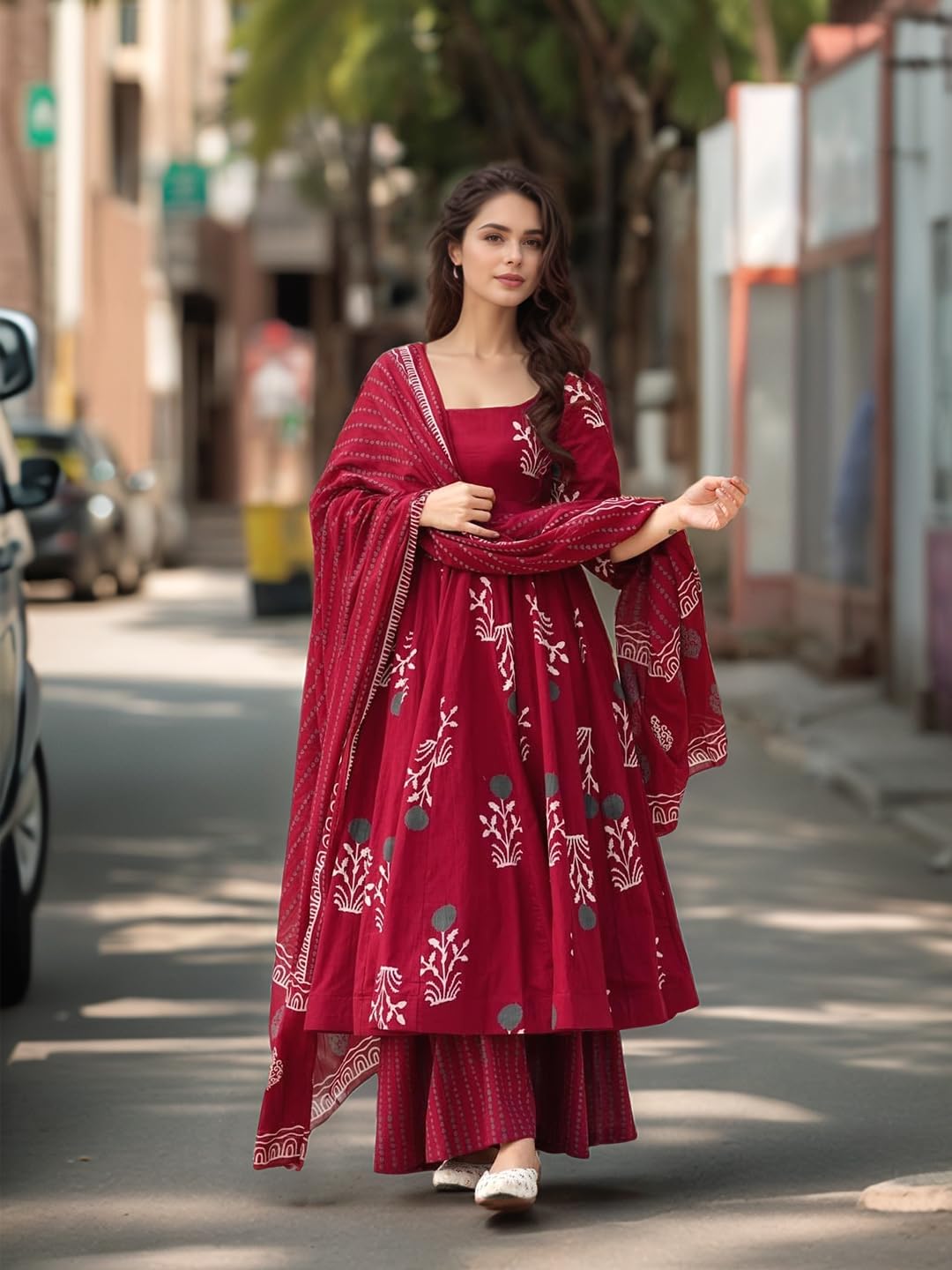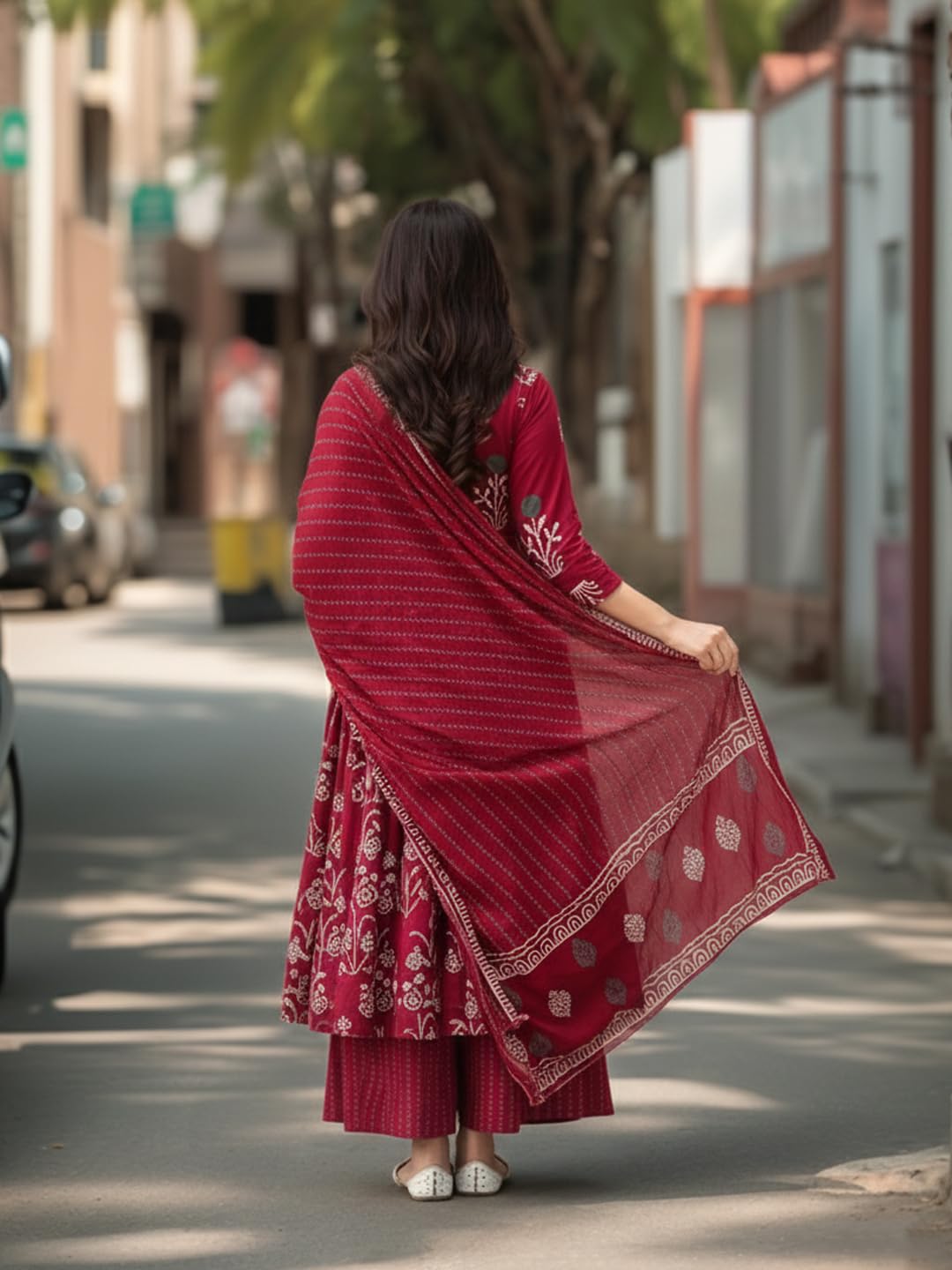 GoSriKi Women’s Rayon Blend Anarkali Printed Kurta with Pant & Dupatta | Ethnic Kurta Pant Dupatta Set for Women | Traditional Indian Wear Outfit