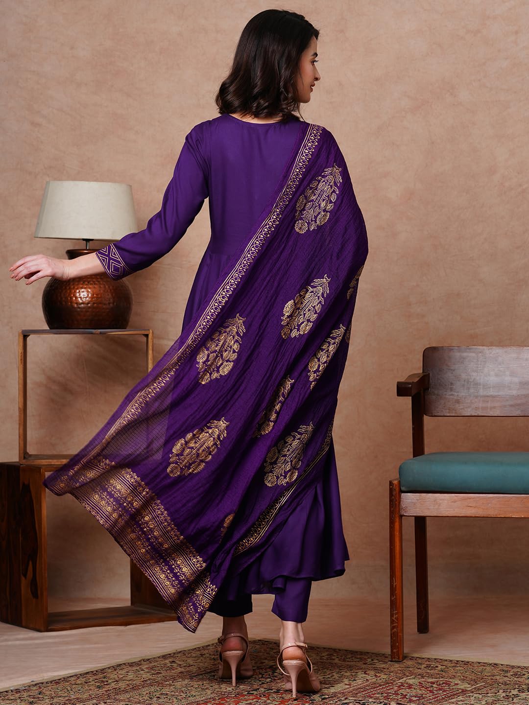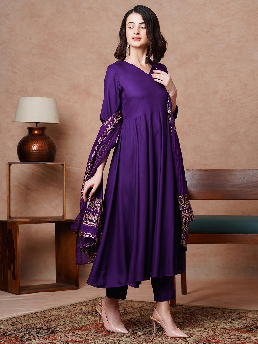 GoSriKi Women’s Rayon Blend Solid Anarkali Kurta with Pant & Dupatta, MAGIC-GREEN-NDM-GS_4XL_Green_XXXX-Large