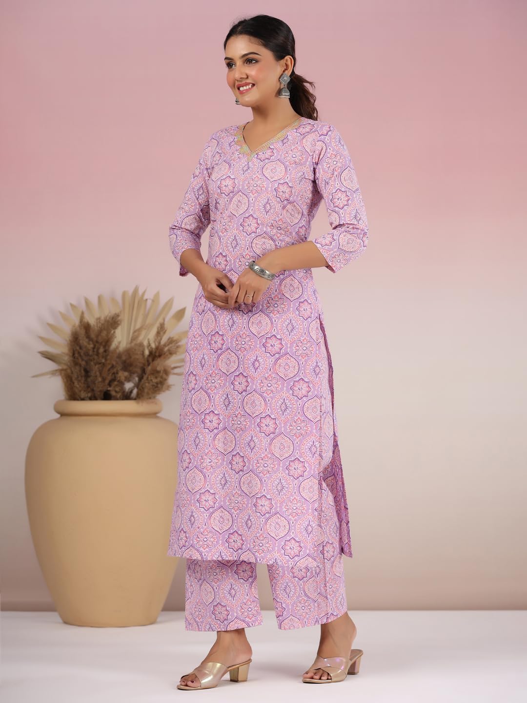 GoSriKi Women’s Rayon Blend Straight Printed Kurta with Palazzo