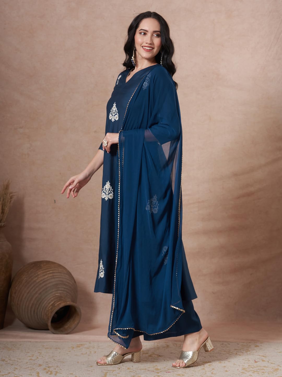 GoSriKi Women’s Rayon Viscose Anarkali Embroidery Kurta with Palazzo and Dupatta