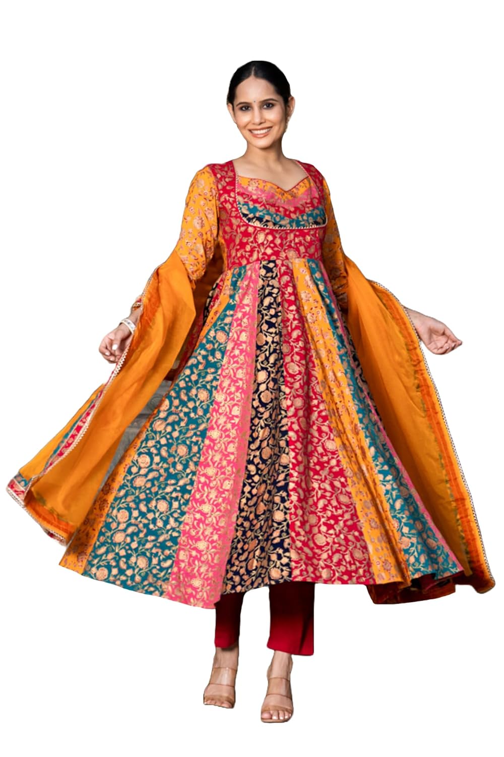 GoSriKi Women’s Rayon Viscose Anarkali Printed Kurta with Pant & Dupatta