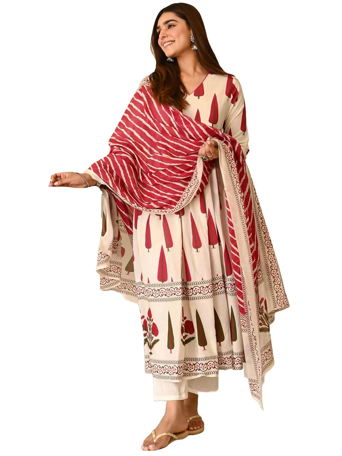 GoSriKi Women’s Rayon Viscose Anarkali Printed Kurta with Pant & Dupatta