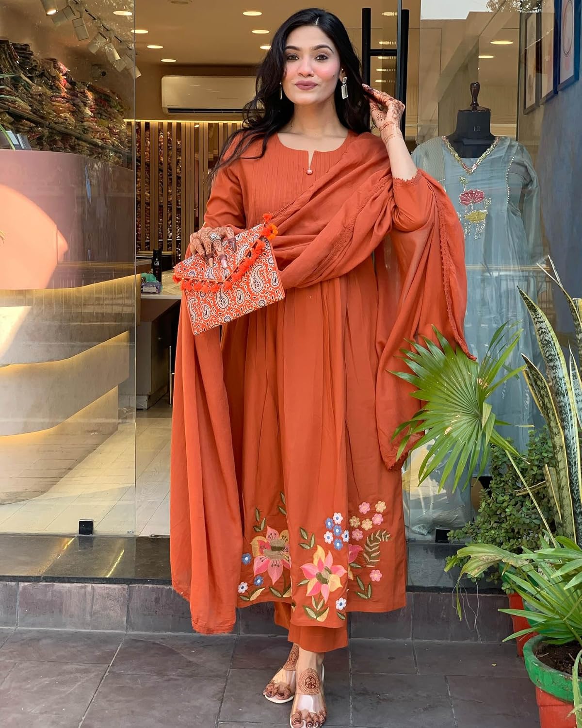 GoSriKi Women’s Rayon Viscose Embroidered Anarkali Kurta with Pant and Dupatta | Three Piece Ethnic Kurta Set for Women with Elegant Design