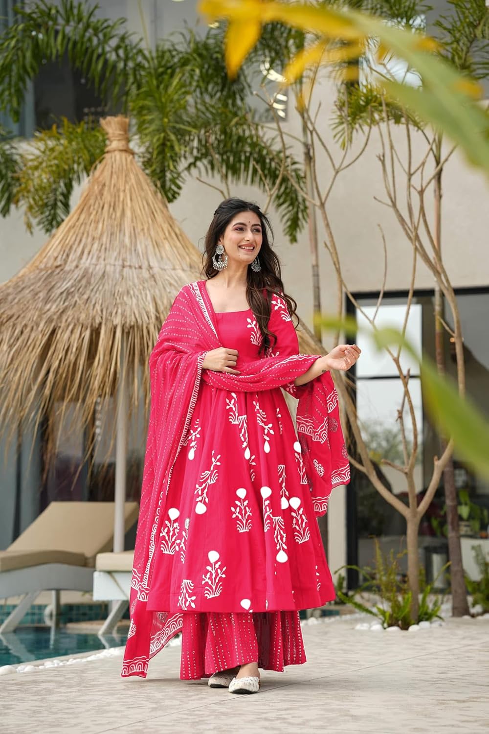 GoSriKi Women’s Rayon Viscose Printed Anarkali Kurta Palazzo with Dupatta