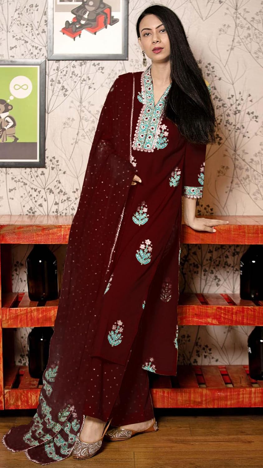 GoSriKi Women’s Rayon Viscose Printed Straight Kurta with Pant & Dupatta