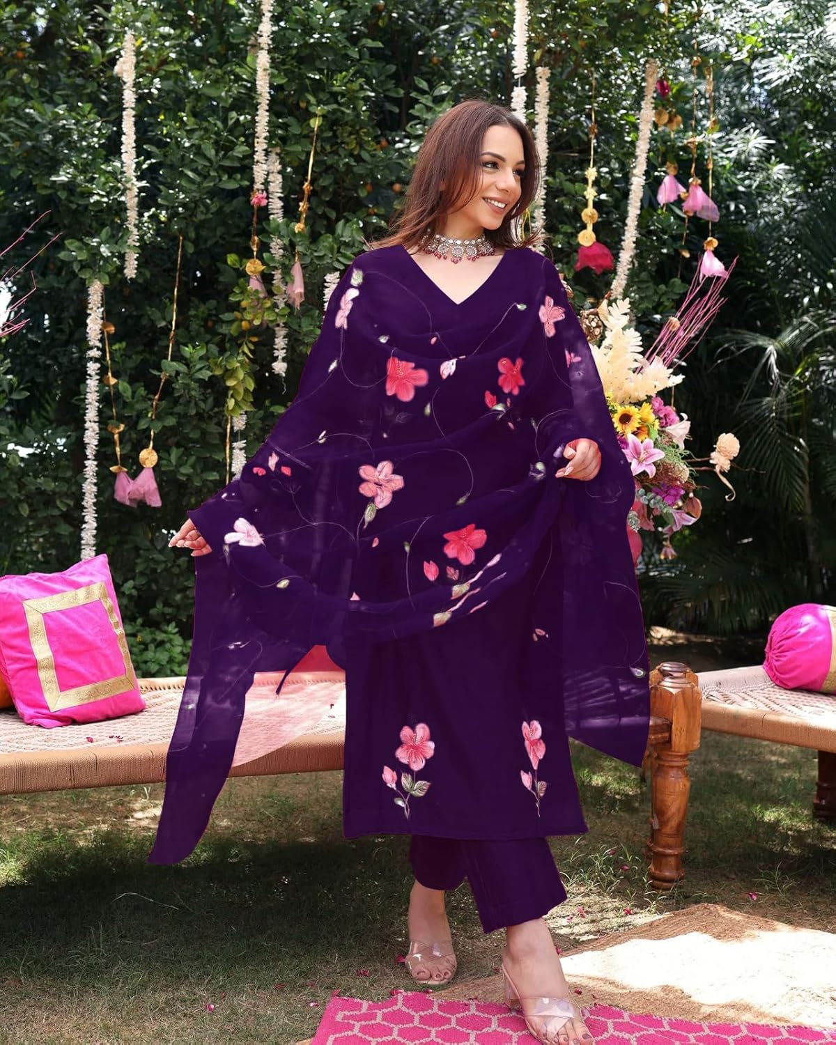 GoSriKi Women’s Rayon Viscose Printed Straight Kurta with Pant & Dupatta