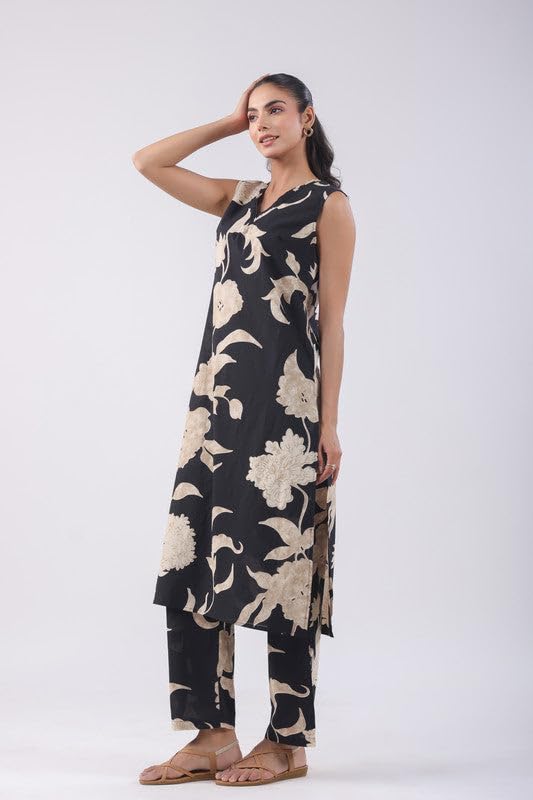 GoSriKi Women’s Rayon Viscose Straight Printed Kurta with Pant