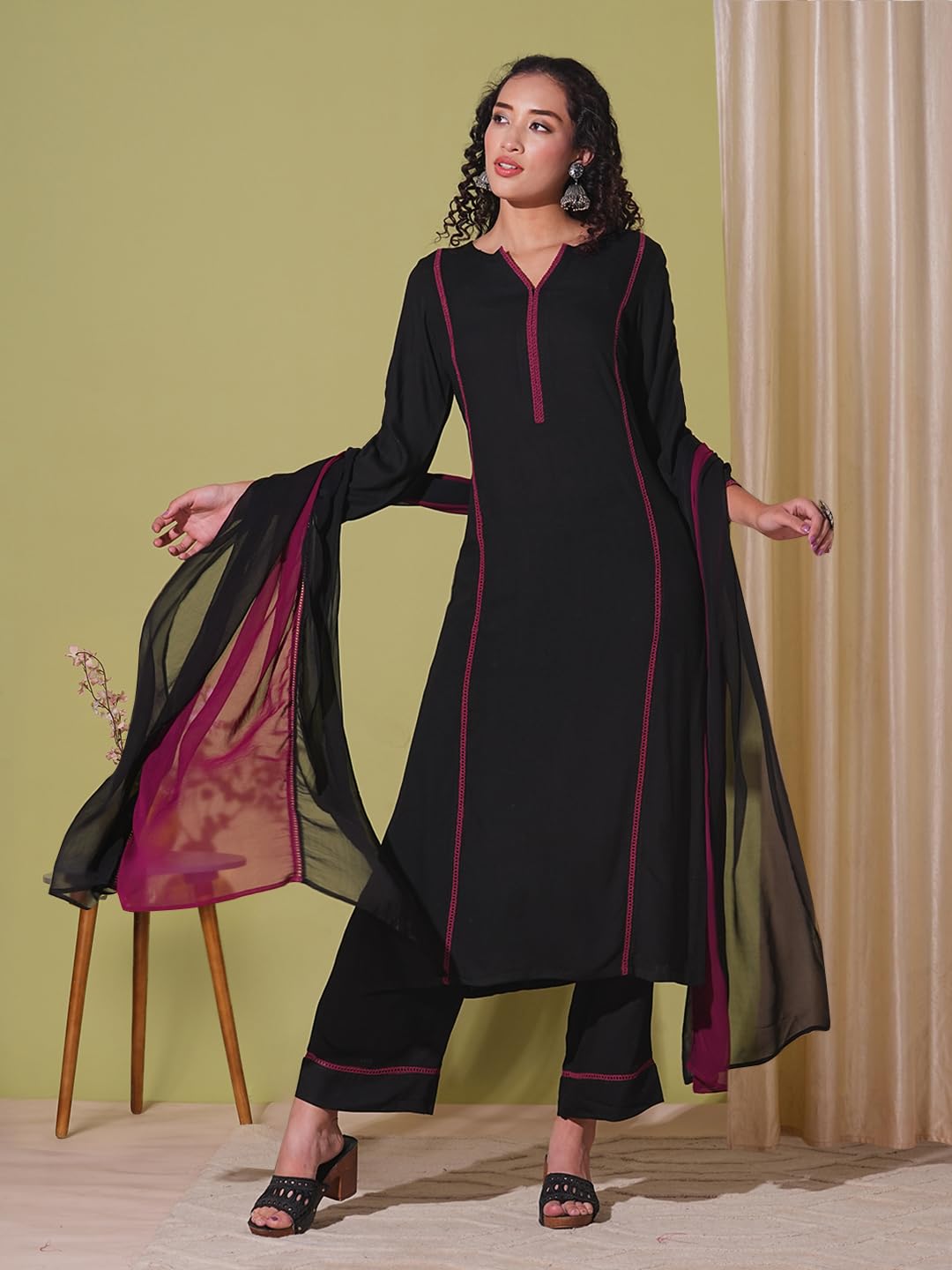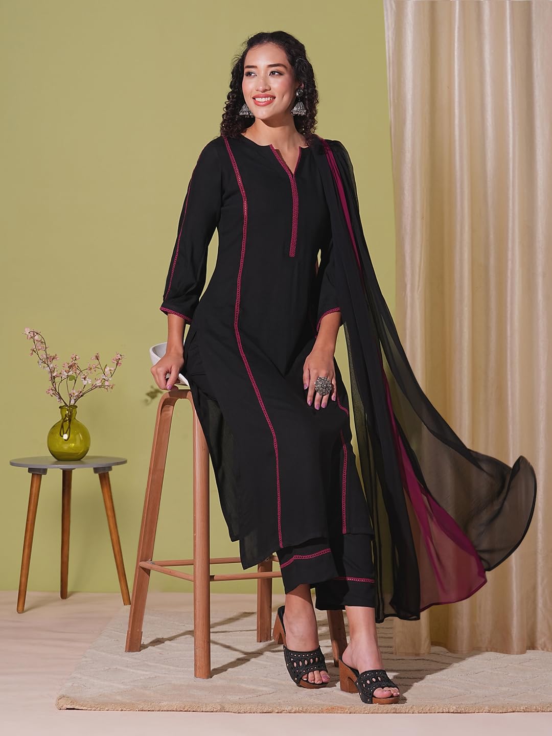GoSriKi Women’s Rayon Viscose Straight Solid Kurta with Pant & Dupatta