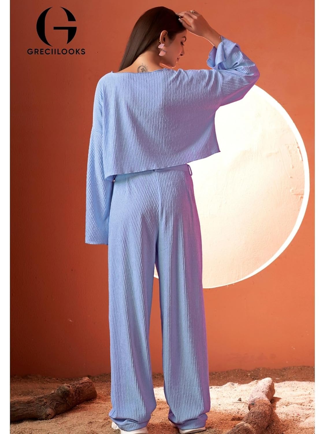 GRECIILOOKS Co-Ord Set for Women stylish | Textured Lycra Blend Casual Western Co-ord Set | Solid Top & Pant Set | Trendy Two Piece Outfit for Casual, Party & Travel Outfits | Winter Co-Ord Set