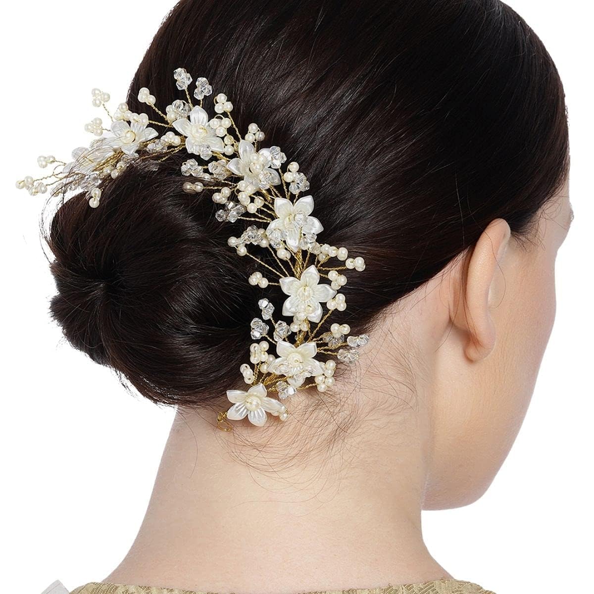 ELEGANT DESIGN: Beautiful combination of artificial flowers and pearl-style embellishments that add a graceful touch to any hairstyle