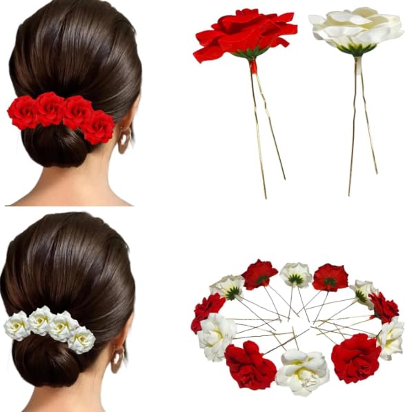 Multiple Color Options – Available in red, white, pink, and dual-tone roses, these decorative hairpins let you mix and match with your outfits for a perfect, elegant look every time.