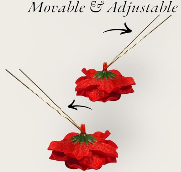 Multiple Color Options – Available in red, white, pink, and dual-tone roses, these decorative hairpins let you mix and match with your outfits for a perfect, elegant look every time.