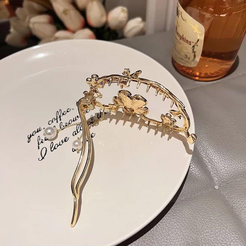 PACKAGE CONTENTS: Pack of 1 designer hair clip in golden colour with decorative elements