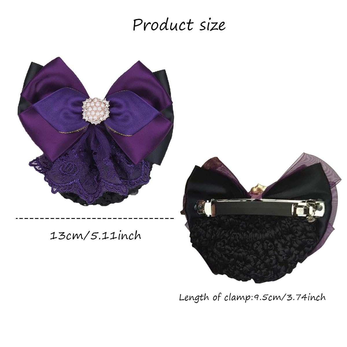 Hair Bun Accessories, Floral Hair Net for Women with Bow Clip, Juda Accessories for Women, Purple Hair Bun for Daily Use, Work, Dance and Professional Occasions