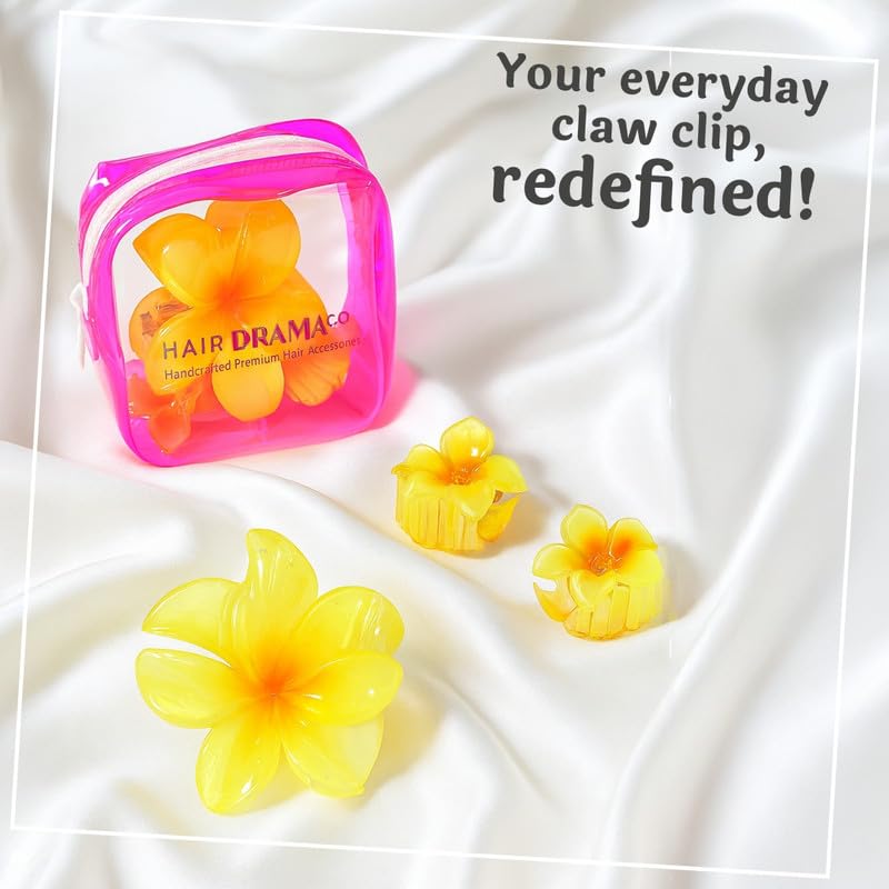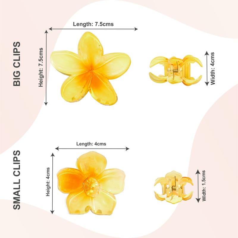 Tropical-Inspired Design: Featuring beautiful Hawaiian floral motifs in radiant yellow and orange tones, these claw clips add a splash of summer to your look—perfect for vacations, beach days, or simply bringing tropical charm to everyday wear.