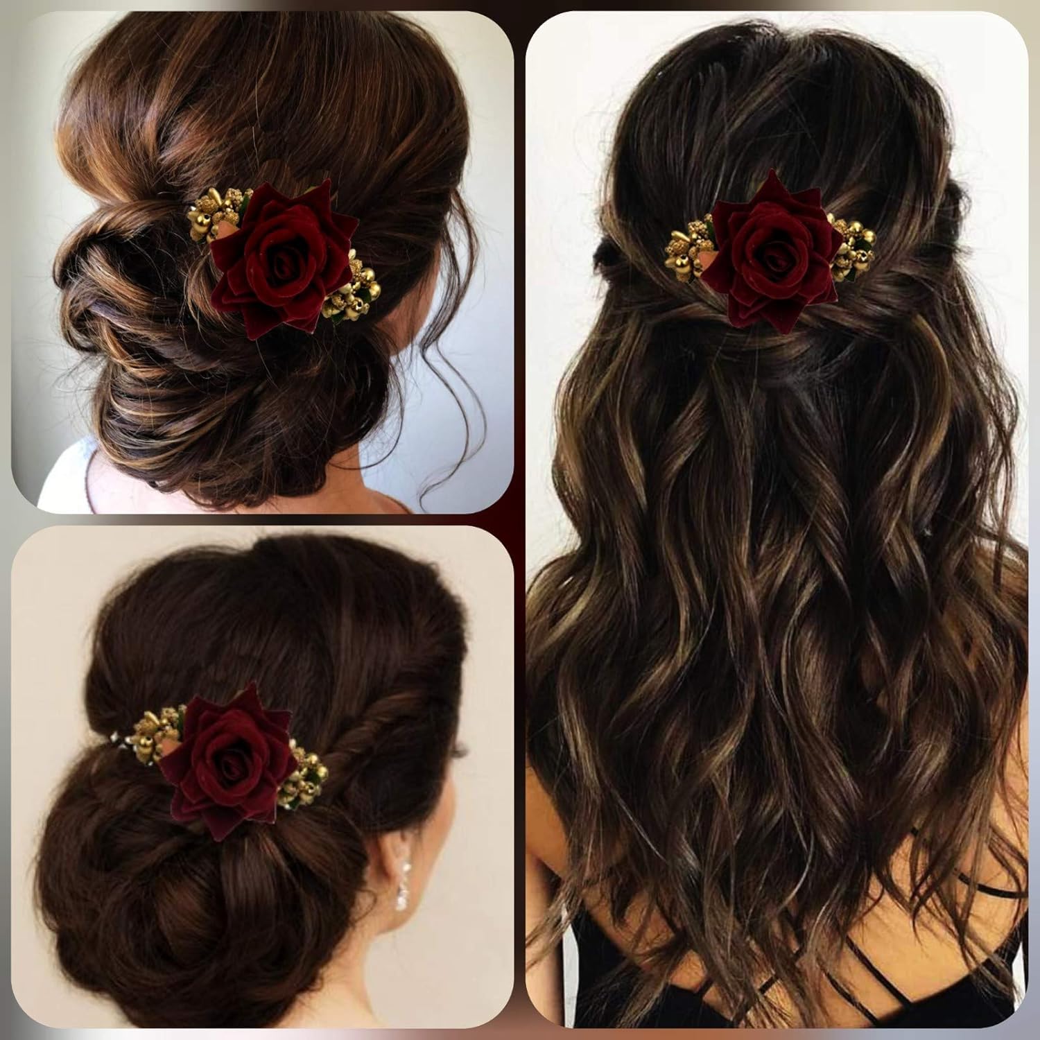 Hair Flare 1 Rose Comb Slide Hair Pin, Hair Accessories For Women, Artificial Flowers Accessories For Women’s & Girls, 1941 Maroon