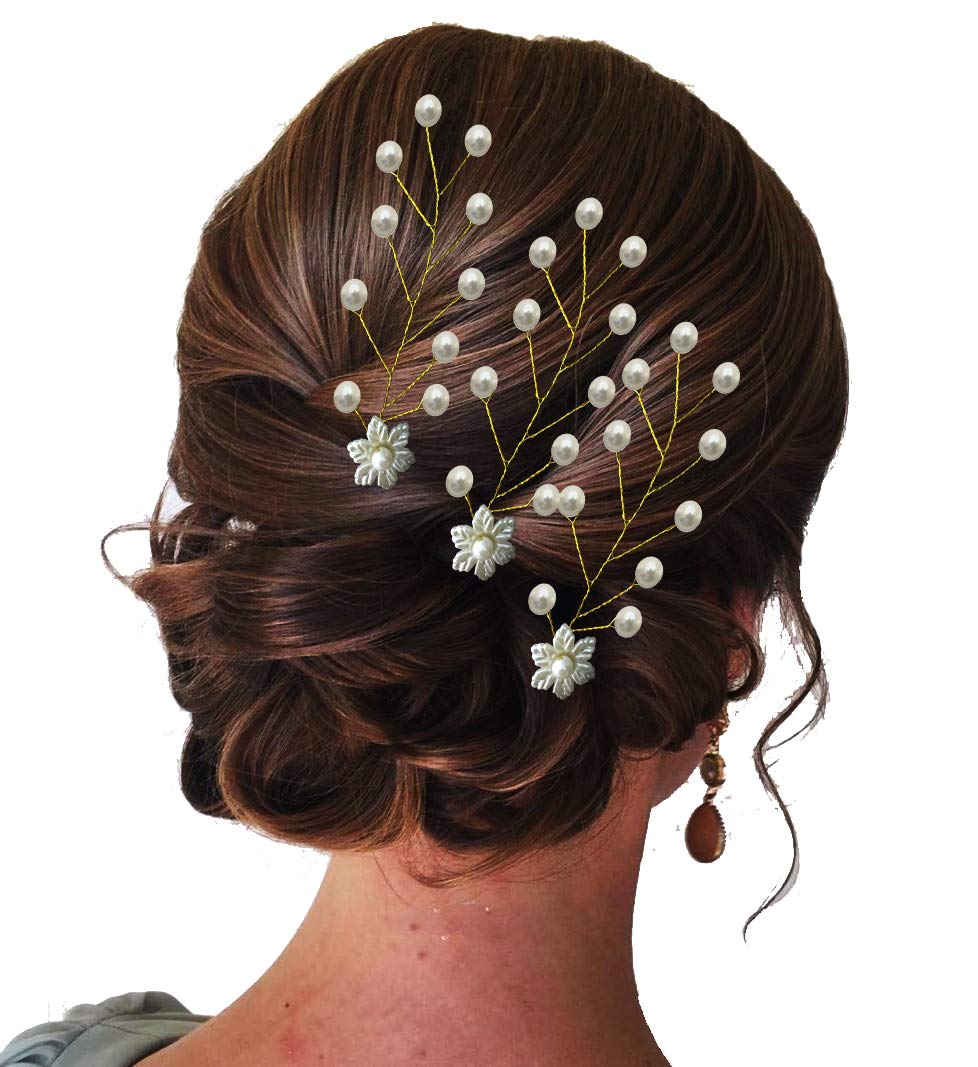 Hair Flare Artificial Flower and Pearls/Bridal Hair Pins Accessories for Women and Girls, Pack of 1, 2159, White