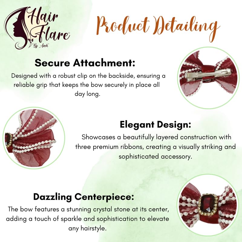 Hair Flare Chic Elegance: Dazzling 3-Layer Hair Bow_2920-Maroon
