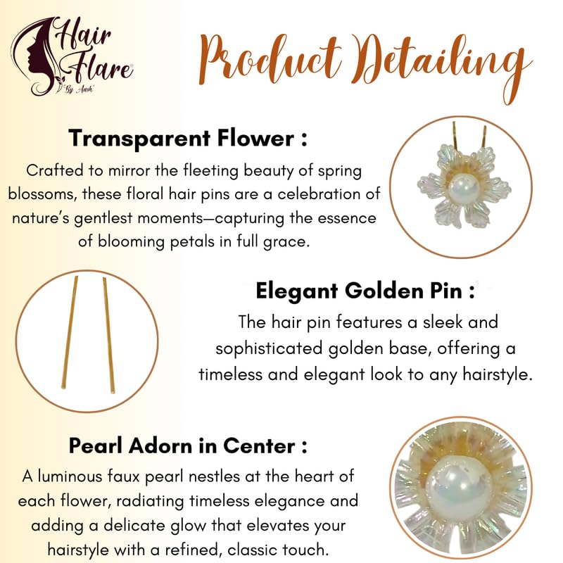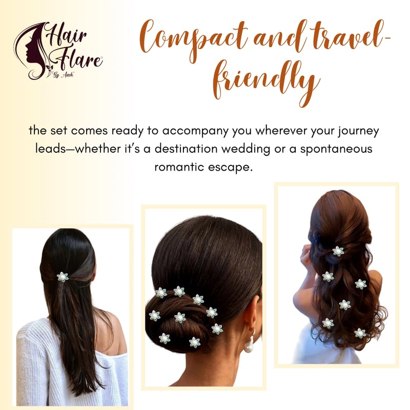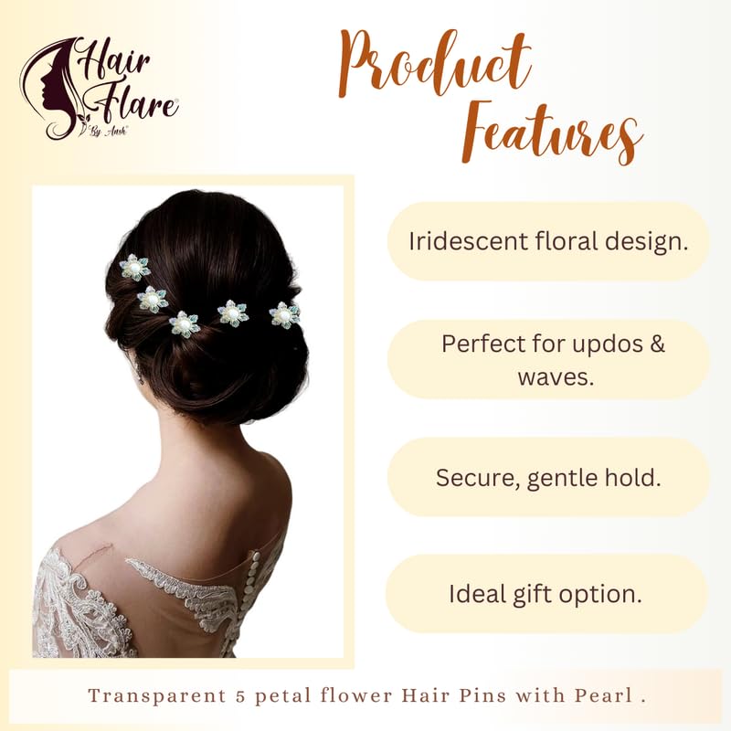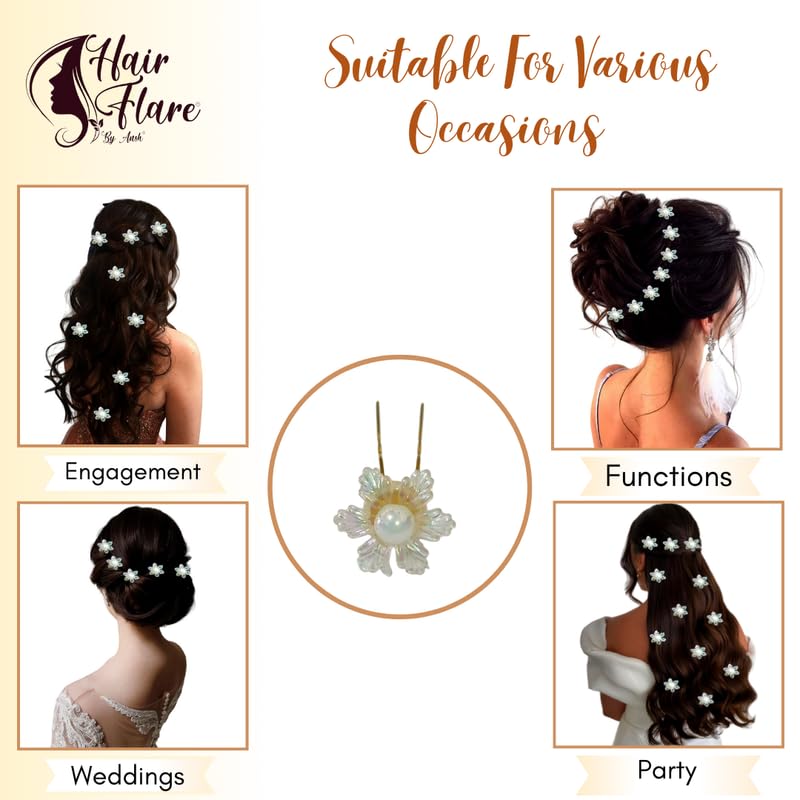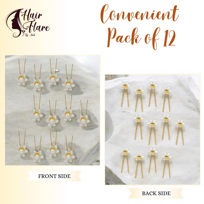 Hair Flare Crystal Pearl Flower Hair Pins for Women – Bridal Hair Accessories for Wedding, Party & Prom – Shiny Floral Hair Clips for Long Hair (Set of 12)
