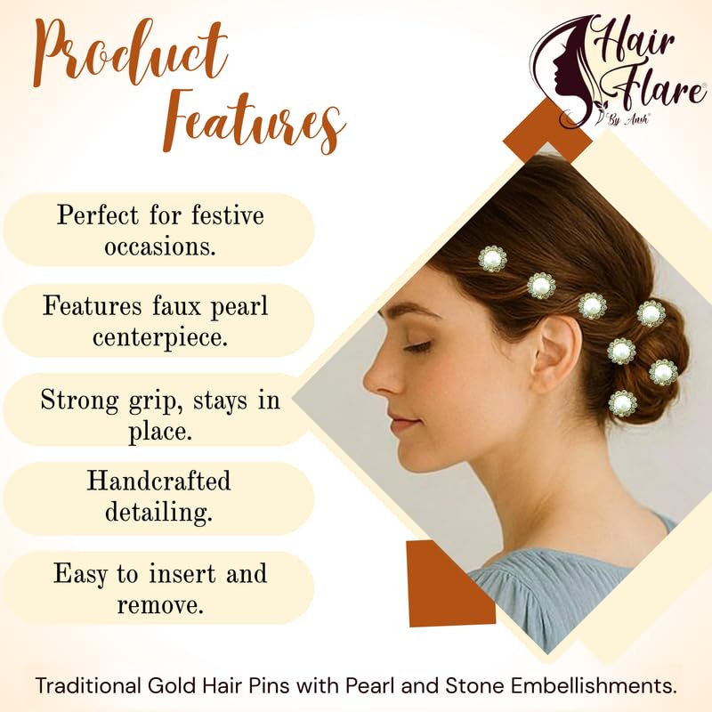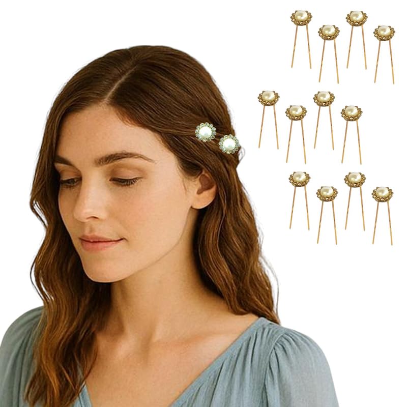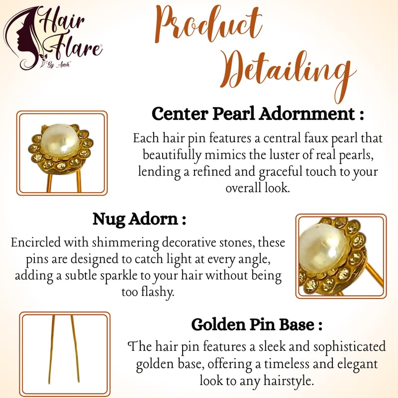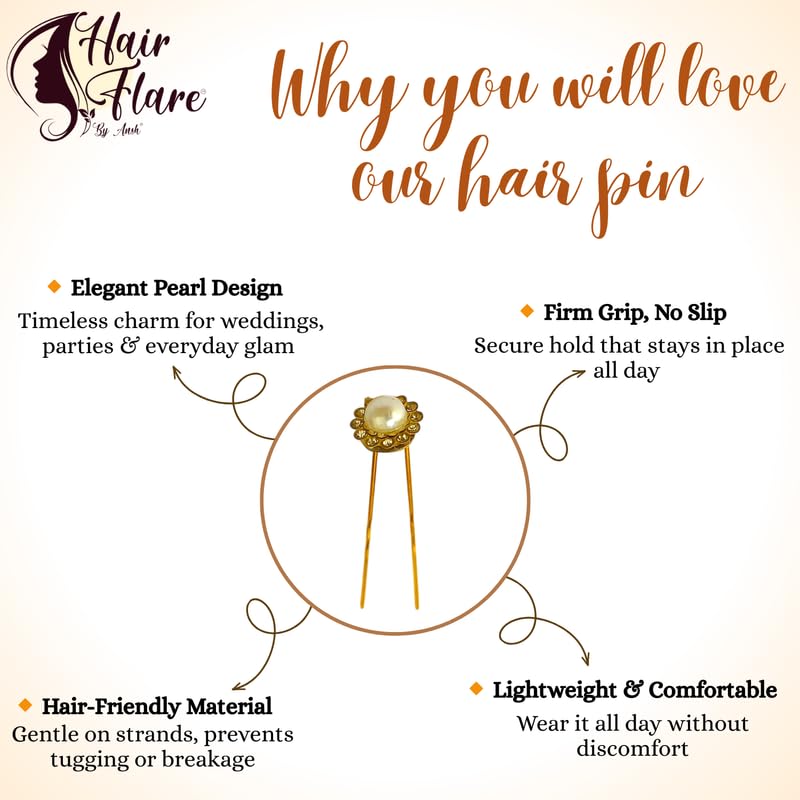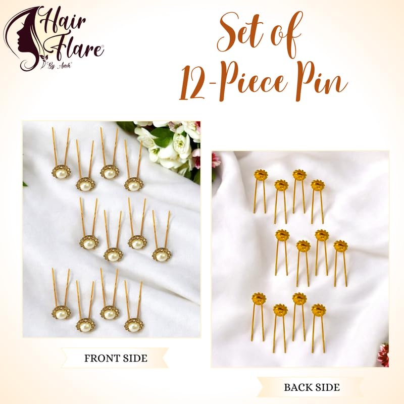 Hair Flare Decorative Hair Pins for Women – Bridal & Party U-Pins with Pearls | Set of 12 | Elegant Bun & Hairstyle Accessories | Model: 3046 | Silver