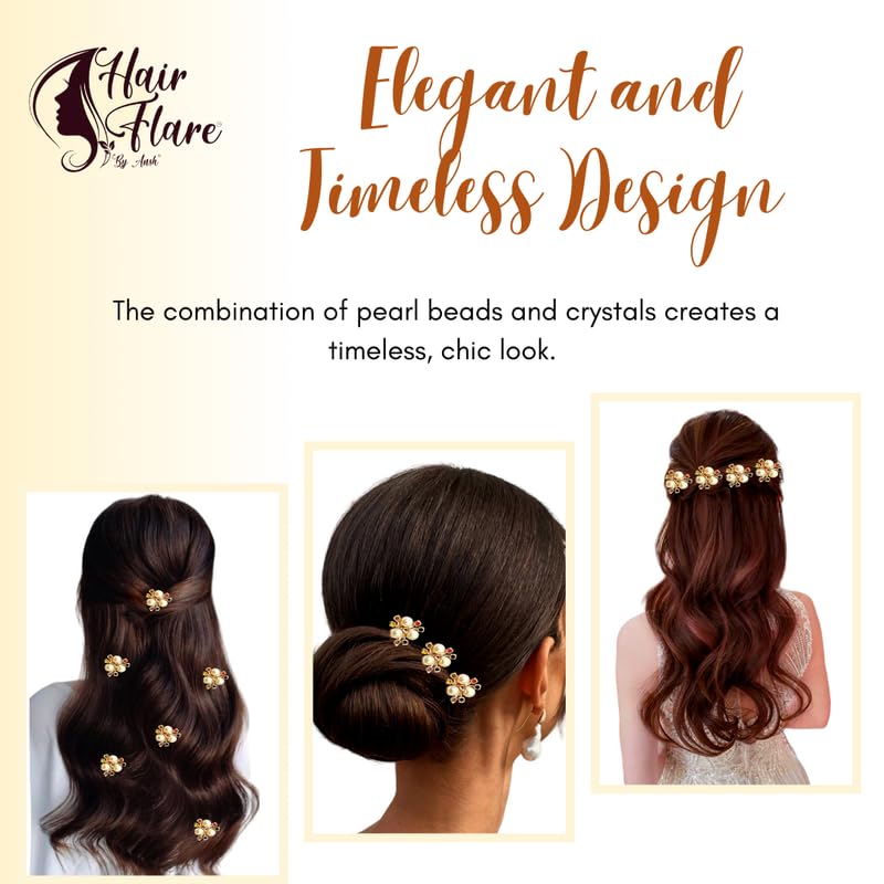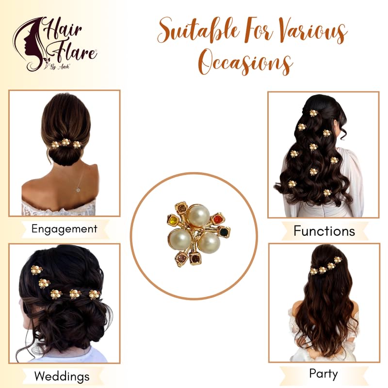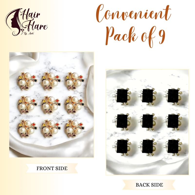 Hair Flare Elegant Floral Pearl Hair Pins for Women | Bridal & Party Hair Accessories | Flower Hair Clips with Pearls & Stones | Set of 9 Hair Jewellery for Wedding & Festive Hairstyles | Multi