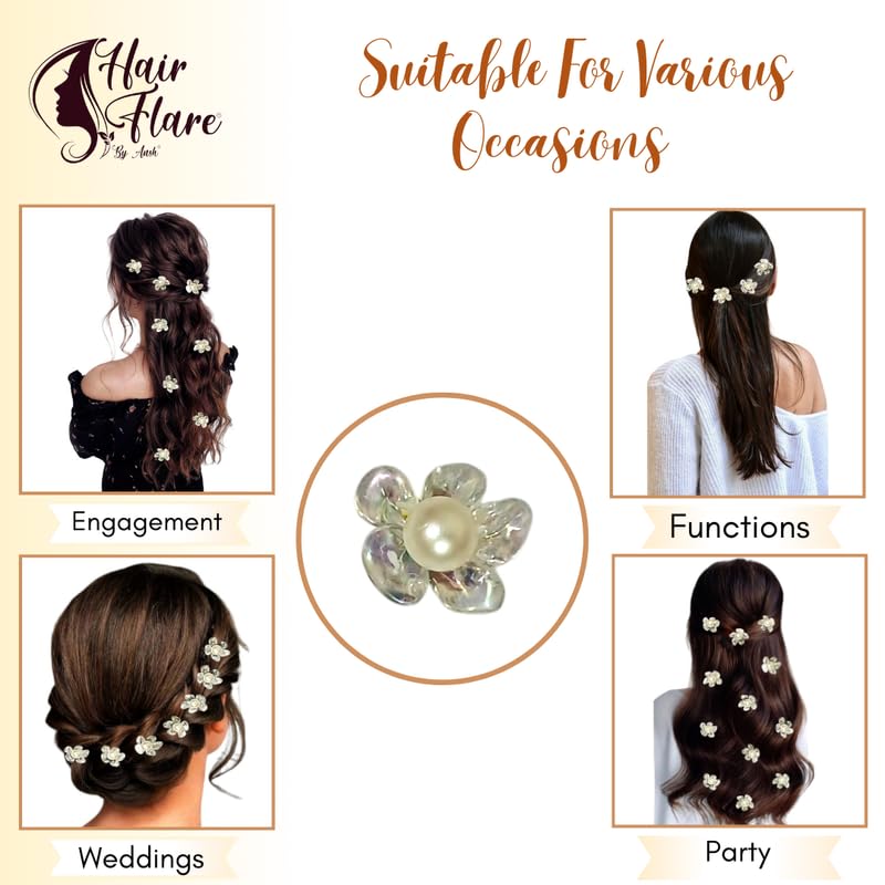 Hair Flare Pearl Flower Hair Pins with Crystals for Women – Elegant Bridal Hair Accessories for Weddings, Parties & Formal Events – Decorative Hair Clips for Long Hair (12 Pcs)